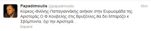 «Κύρκος – Φιλίνης – Παπαγιαννάκης ανήκαν στην Ευρωομάδα της Αριστεράς. Ο Φ.Κουβέλης στις Βρυξέλλες, θα δει Μπαρόζο και Σβόμποντα, όχι την Αριστερά…».