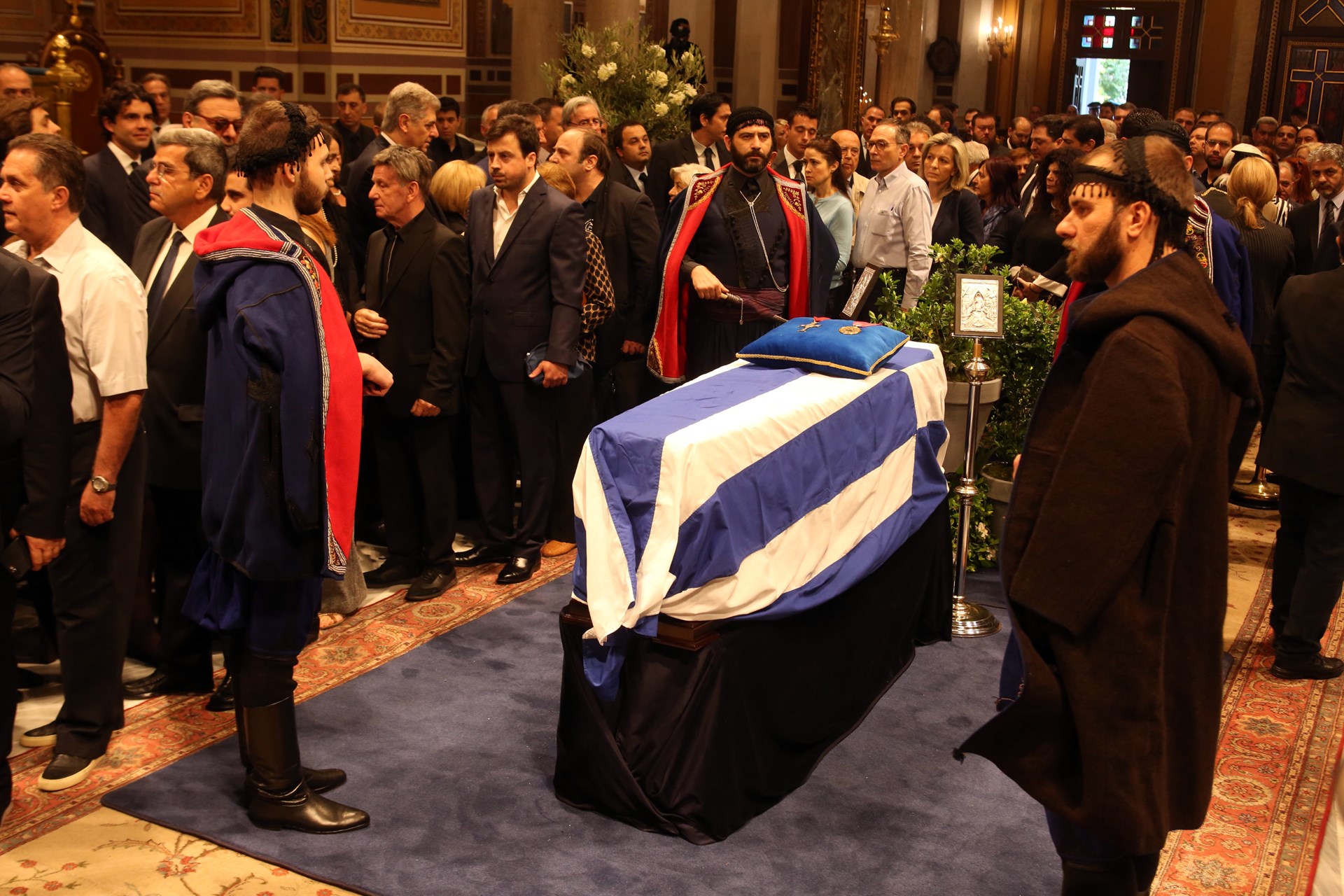 Τα παράσημα του πρώην πρωθυπουργού Κωνσταντίνου Μητσοτάκη η σορός του οποίου έχει τεθεί σε λαϊκό προσκύνημα στη Μητρόπολη