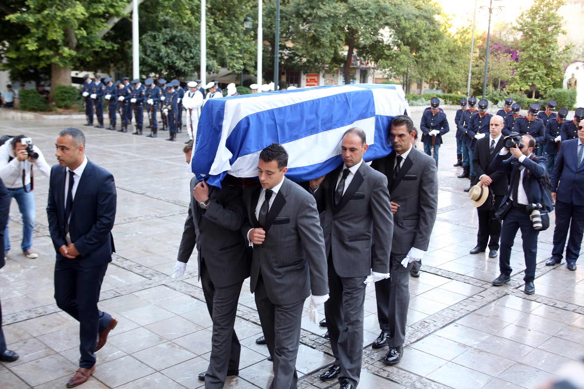 Η σορός του πρώην Πρωθυπουργού και επίτιμου προέδρου της Νέας Δημοκρατίας Κωνσταντίνου Μητσοτάκη τυλιγμένη με την ελληνική σημαία μεταφέρθηκε στη Μητρόπολη Αθηνών, στις 7 το πρωί ακριβώς.