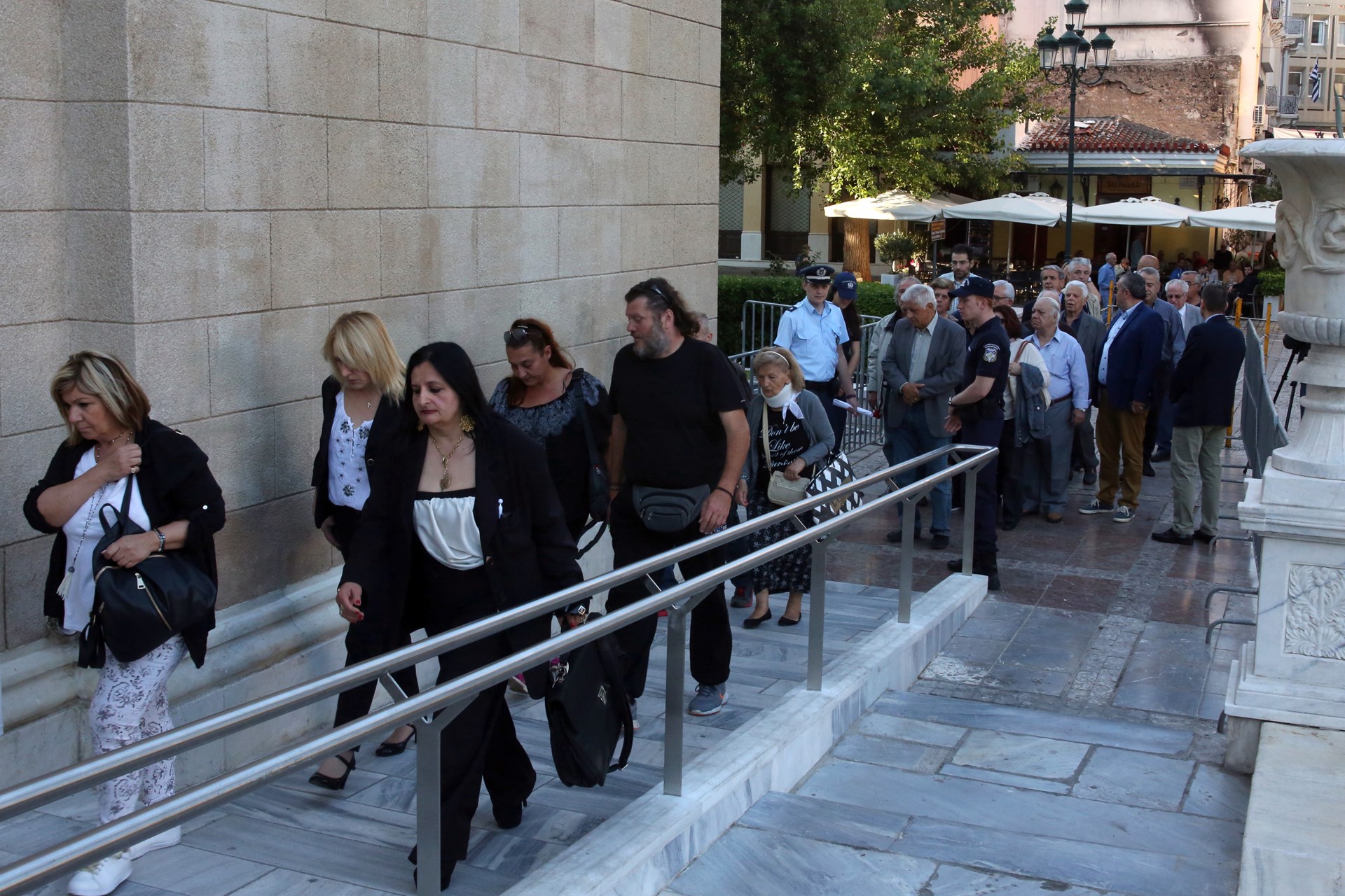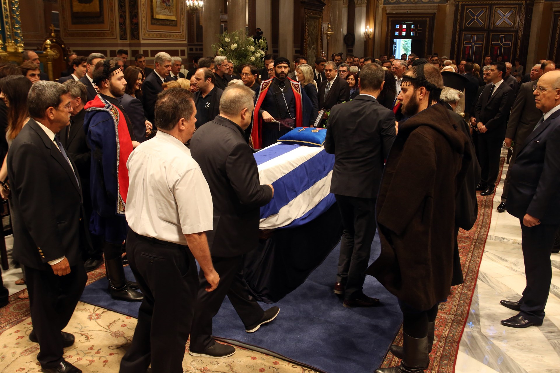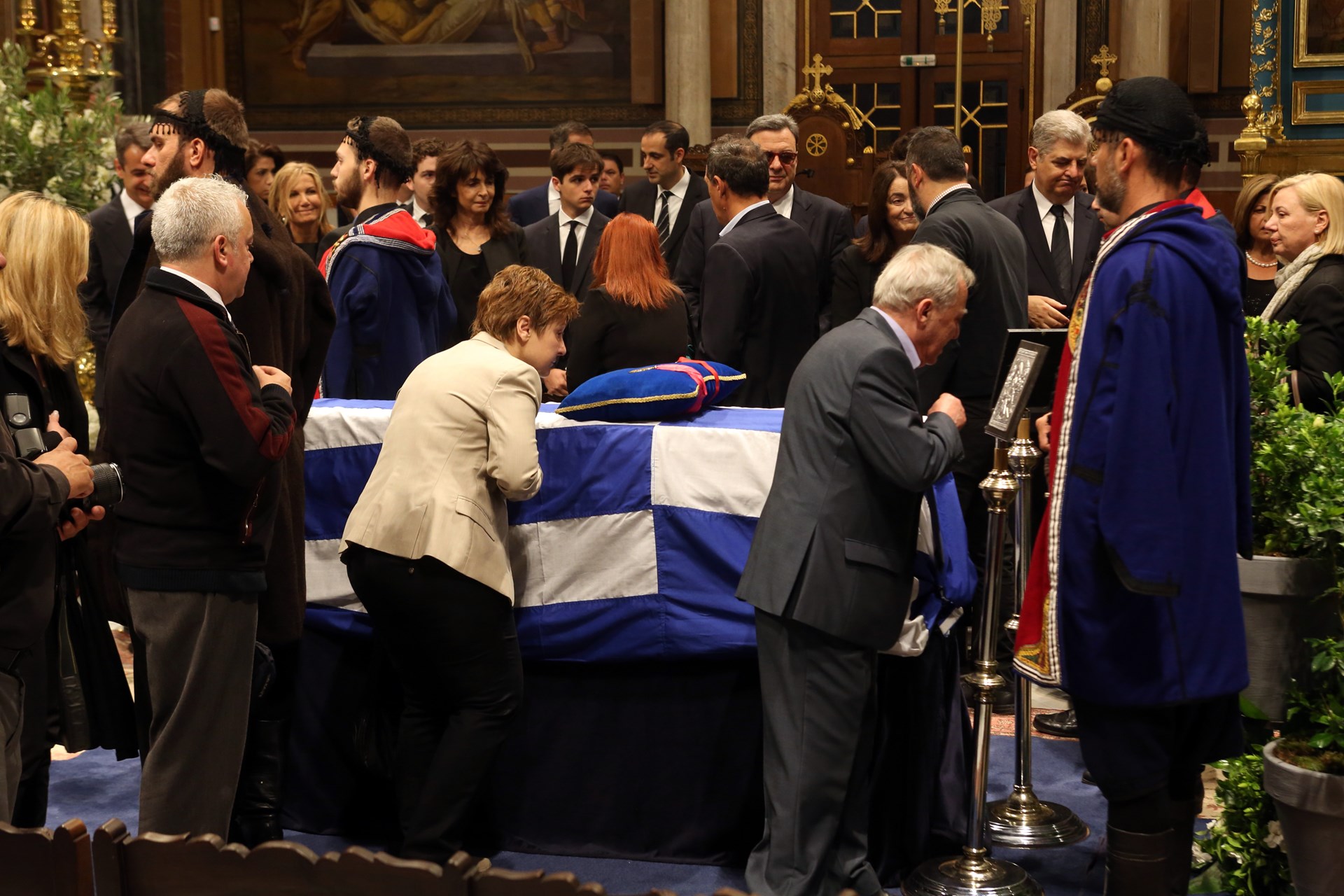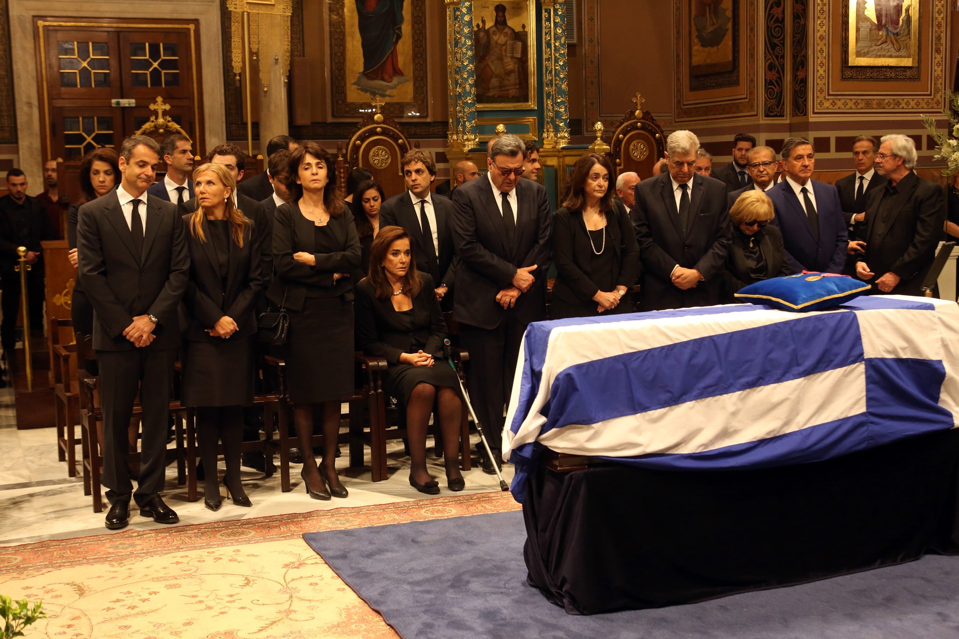 Κόσμος μπαίνει στη Μητρόπολη Αθηνών για να χαιρετίσει τη σορό του πρώην Πρωθυπουργού Κωνσταντίνου Μητσοτάκη.