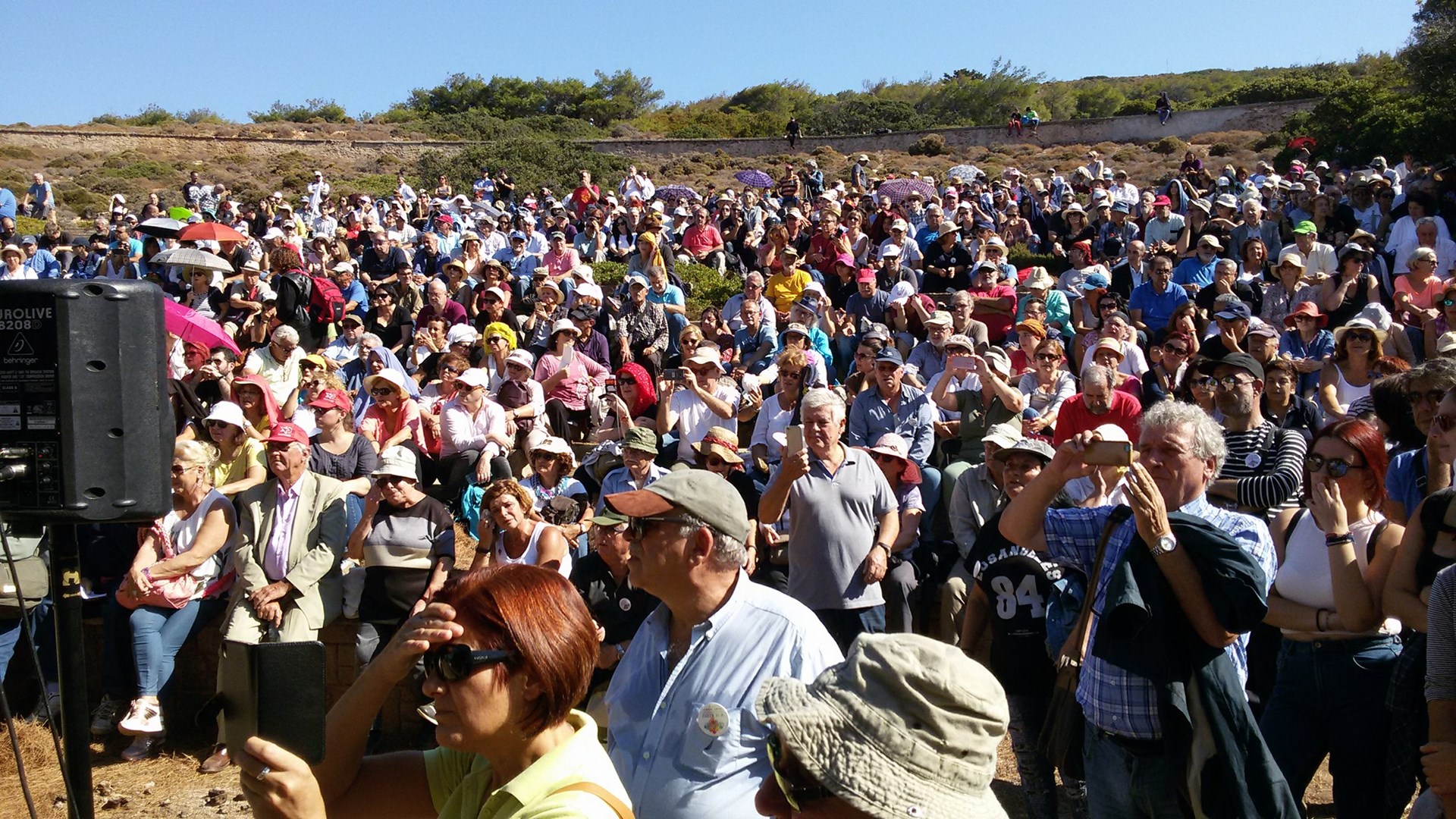 Άνθρωποι κάθε ηλικίας, από διάφορα μέρη όχι μόνο της Αττικής αλλά και της Ελλάδας, κατέφθασαν από νωρίς το πρωί στη Μακρόνησο, αψηφώντας τις δυσκολίες του κακοτράχαλου εδάφους.