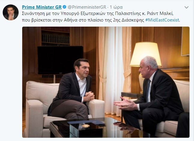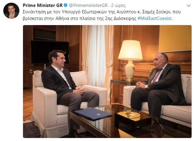 Διαδοχικές συναντήσεις με τους υπουργούς Εξωτερικών της Αιγύπτου και της Παλαιστίνης είχε σήμερα ο Πρωθυπουργός Αλέξης Τσίπρας.