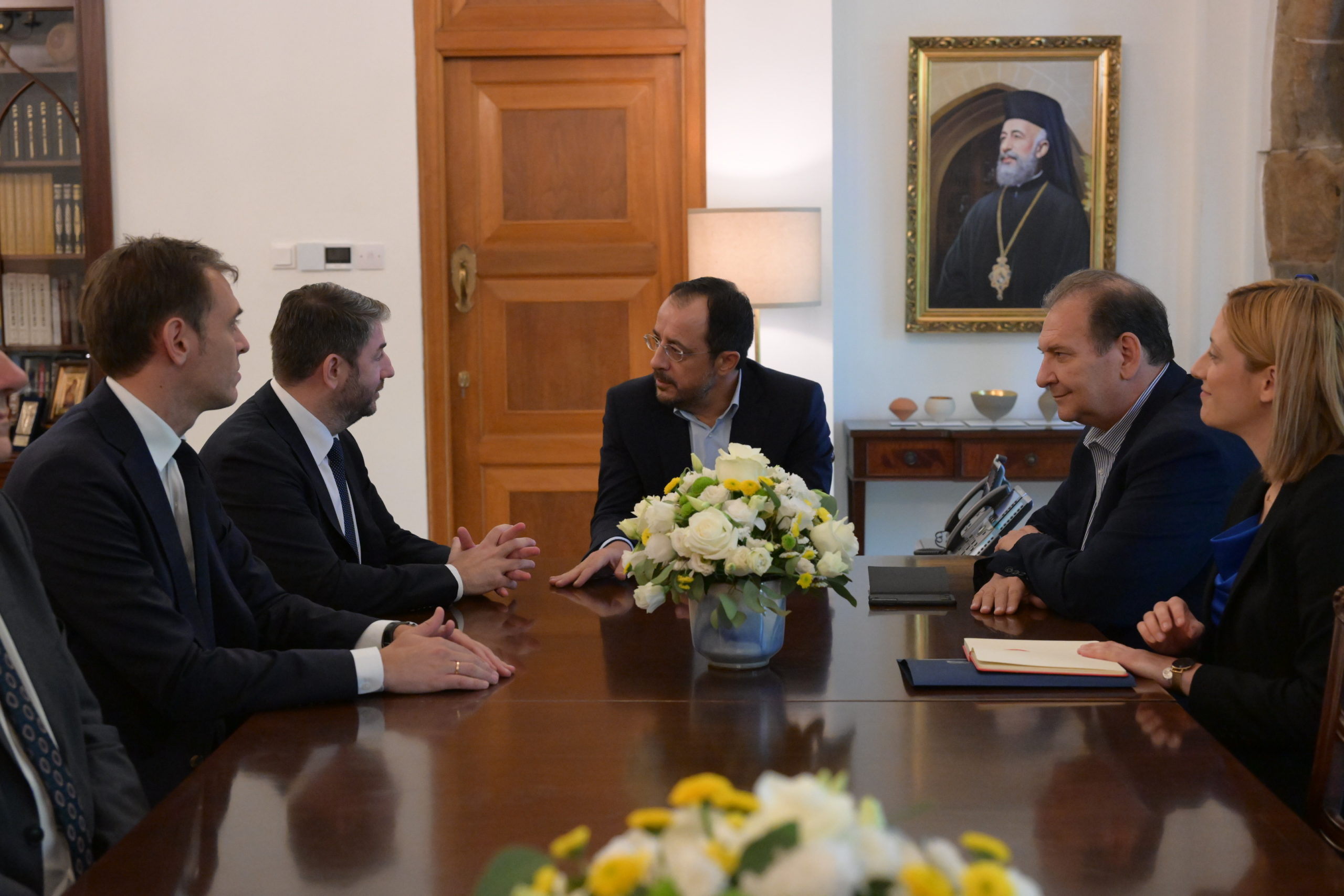 «Γνωρίζω την ποιότητά σου ως ευρωβουλευτή από τα χρόνια της θητείας σου στο Ευρωπαϊκό Κοινοβούλιο, τη συνεργασία που ανέπτυξες με τους Κύπριους συναδέλφους σου και τις παρεμβάσεις σου στα θέματα του Κυπριακού», ανέφερε ο Πρόεδρος της Κυπριακής Δημοκρατίας, υποδεχόμενος τον πρόεδρο του ΠΑΣΟΚ-Κινήματος Αλλαγής, Νίκο Ανδρουλάκη, στο Προεδρικό Μέγαρο.