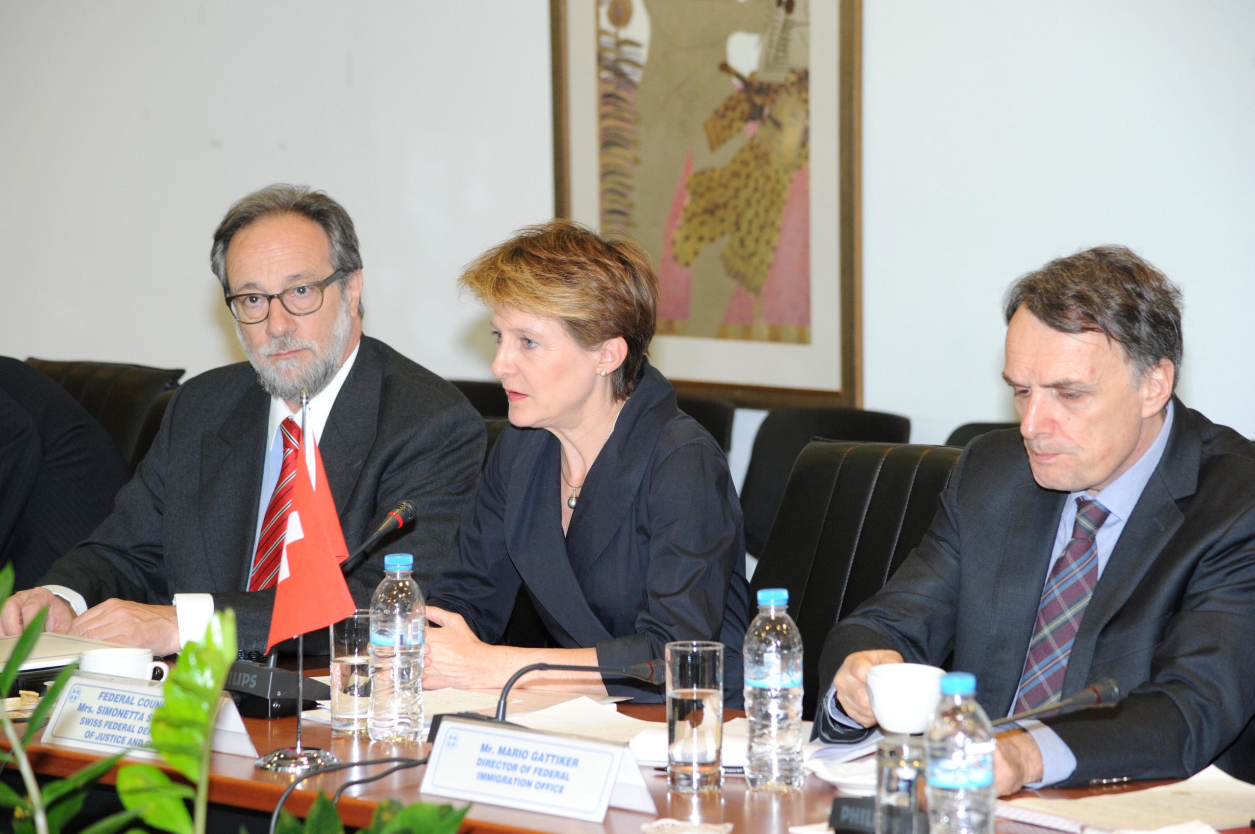 Η Υπουργός Δικαιοσύνης και Αστυνομίας της Ομοσπονδιακής Κυβέρνησης της Ελβετίας εξέφρασε την επιθυμία για ενίσχυση της συνεργασίας των δυο χωρών τόσο σε πολιτικό επίπεδο για ζητήματα μετανάστευσης και ασύλου, όσο και σε επίπεδο αστυνομικής συνεργασίας στους τομείς αντιμετώπισης του λαθρεμπορίου και του trafficking, που συχνά έχουν ως θύματα παράνομους μετανάστες.