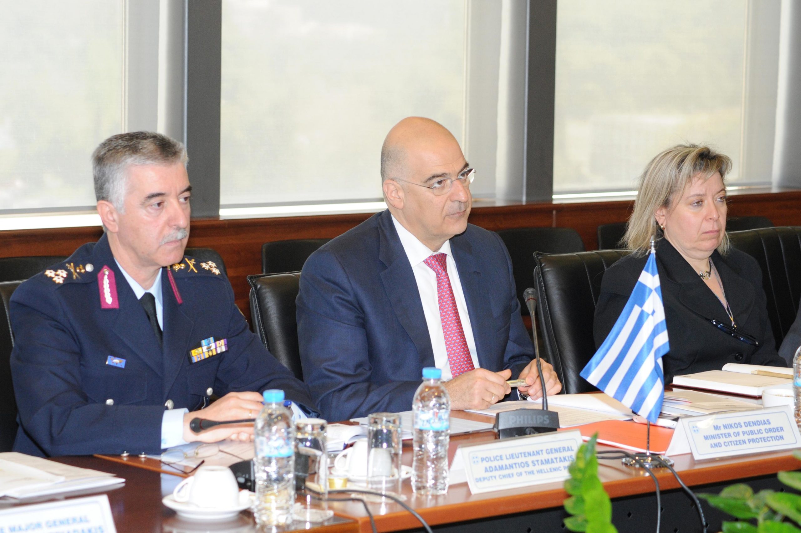 Κατά τη διάρκεια της συνάντησης, ο κ. Δένδιας παρουσίασε τις πρωτοβουλίες που αναπτύσσει το Υπουργείο Δημόσιας Τάξης και Προστασίας του Πολίτη για την αποτελεσματική εφαρμογή του Εθνικού Σχεδίου Δράσης για τη μετανάστευση και το άσυλο.