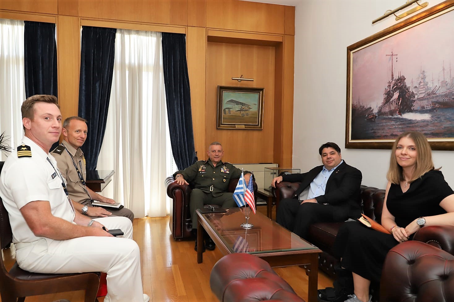 Ακολούθως έκανε ιδιαίτερη μνεία στην Στρατιωτική Συνεργασία μεταξύ Ελλάδας και ΗΠΑ, η οποία αναβαθμίζεται συνεχώς τόσο με τις διαδοχικές επικαιροποιήσεις της Mutual Defense Cooperation Agreement (MDCA), όπως και με την διαρκή εκτέλεση κοινών δραστηριοτήτων επιχειρησιακής εκπαίδευσης σε διακλαδικό επίπεδο. Ο Αρχηγός ΓΕΕΘΑ αναφέρθηκε επίσης στα τρέχοντα εξοπλιστικά προγράμματα και στην υλοποίησή τους με σκοπό αφενός την διασφάλιση αφετέρου την στοχευμένη αναβάθμιση των δυνατοτήτων των Ενόπλων Δυνάμεων, καθώς και στις διαδικασίες ενεργοποίησης του προγράμματος πρόσκτησης Μαχητικών Αεροσκαφών F-35 οι οποίες είναι σε εξέλιξη.