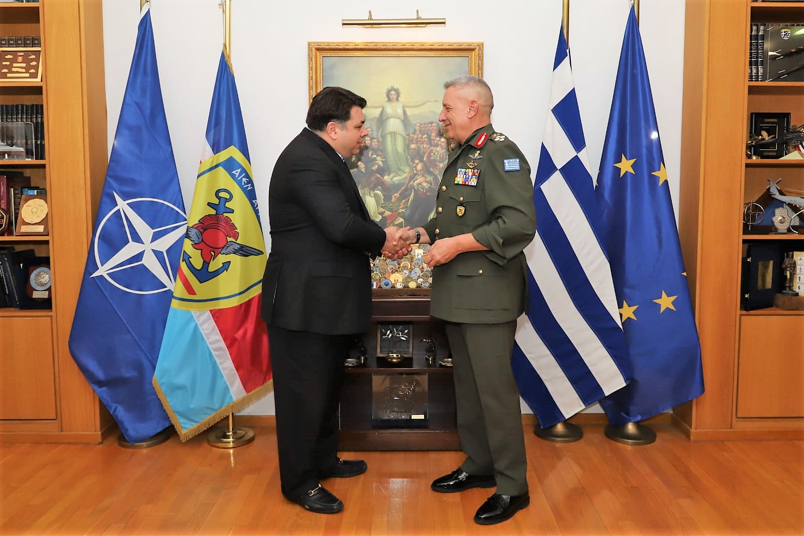 Ο Αρχηγός ΓΕΕΘΑ Στρατηγός Κωνσταντίνος Φλώρος συναντήθηκε στο γραφείο του με την Α.Ε. τον Πρέσβη των ΗΠΑ στην Ελλάδα George J. Tsunis, ο οποίος πραγματοποίησε επίσημη επίσκεψη στο ΓΕΕΘΑ.