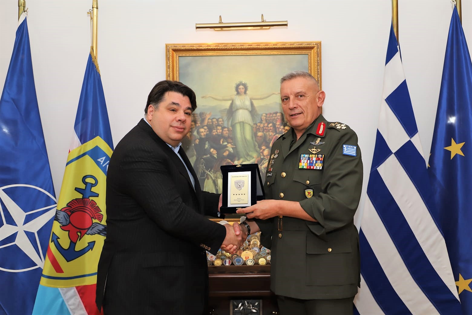 Στο πλαίσιο αυτό, ο Αρχηγός ΓΕΕΘΑ αναφέρθηκε στον ρόλο της Ελλάδος, η οποία προσηλωμένη στη διεθνή νομιμότητα και στην τήρηση των αρχών καλής γειτονίας, συνεισφέρει με τις Ένοπλες Δυνάμεις της στην ασφάλεια και στην σταθερότητα της περιοχής με την γενικότερη ενεργό και έμπρακτη συμμετοχή της στις δράσεις του ΝΑΤΟ, της ΕΕ και του ΟΗΕ καθώς και με την διάθεση ανθρωπιστικής βοήθειας, προσωπικού, μέσων και αμυντικού υλικού και ειδικότερα με την παροχή σημαντικών διευκολύνσεων μέσω της Σούδας και της Αλεξανδρούπολης.
