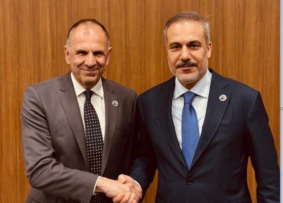 Ο Υπουργός Εξωτερικών Γιώργος Γεραπετρίτης συναντήθηκε σήμερα με τον Τούρκο ομόλογό του, Χακάν Φιντάν, στο περιθώριο της άτυπης Συνόδου Υπουργών Εξωτερικών του ΝΑΤΟ, η οποία διεξάγεται στην Αττάλεια.