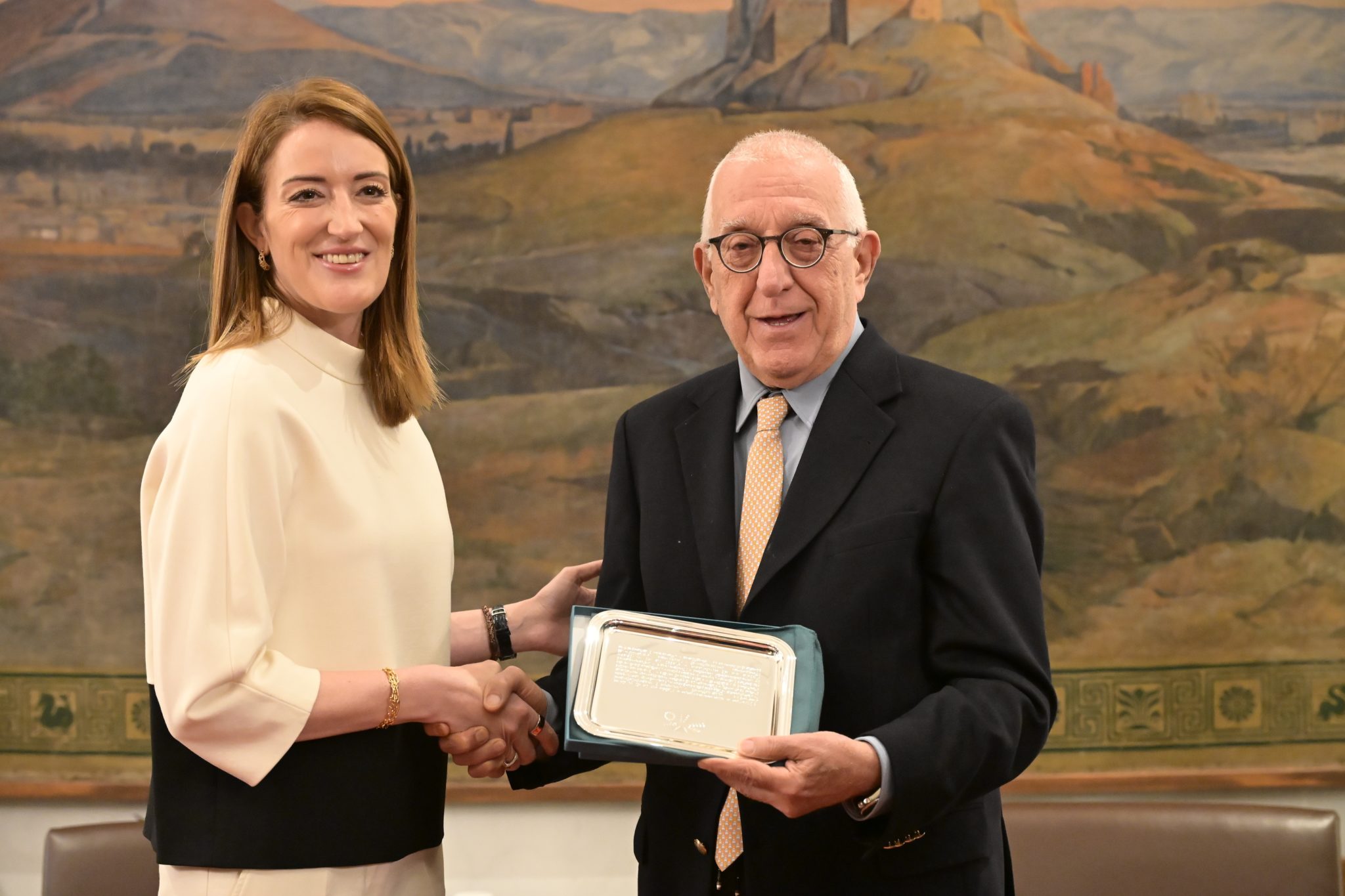 Κατά τη διάρκεια της συνάντησης, οι δύο πλευρές αντάλλαξαν δώρα, με τον πρόεδρο της Βουλής να προσφέρει στην Ρομπέρτα Μέτσολα ένα μεταξωτό μαντήλι με απεικόνιση έργου τέχνης από τη συλλογή της Βουλής των Ελλήνων, ως σύμβολο της πολιτιστικής κληρονομιάς και των στενών δεσμών συνεργασίας μεταξύ της Ελλάδας και των ευρωπαϊκών θεσμών.