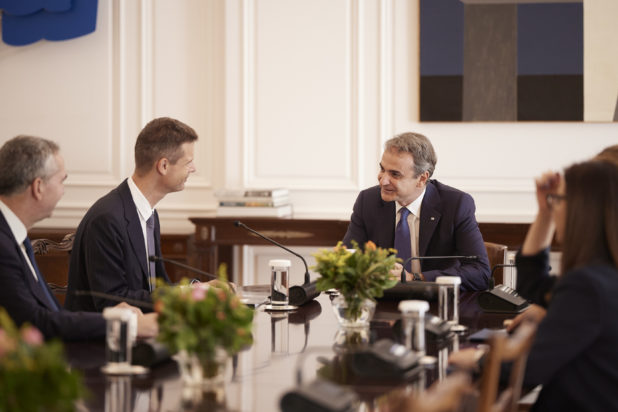 Ο πρωθυπουργός Κυριάκος Μητσοτάκης συναντήθηκε στο Μέγαρο Μαξίμου με τον νέο Πρόεδρο του Ευρωπαϊκού Δικαστηρίου Ανθρωπίνων Δικαιωμάτων Marko Bošnjak, ο οποίος συνοδευόταν από τον νεοεκλεγέντα Πρόεδρο Τμήματος του ΕΔΑΔ, δικαστή Γιάννη Κτιστάκι.