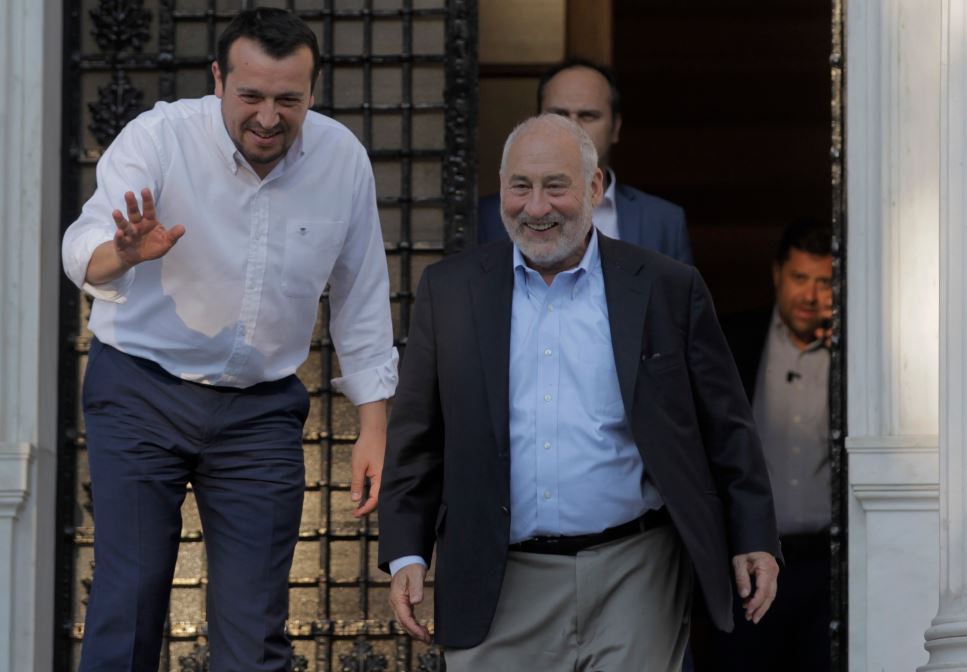 Συνάντηση με τον Πρωθυπουργό, Αλέξη Τσίπρα, είχε νωρίτερα στο Μέγαρο Μαξίμου, ο νομπελίστας οικονομολόγος, Τζόζεφ Στίγκλιτς, ενώ όπως φαίνεται και στη φωτογραφία ο υπουργός Επικρατείας Νίκος Παππάς, τον συνόδευσε κατά την αποχώρηση του από το Μέγαρο Μαξίμου.