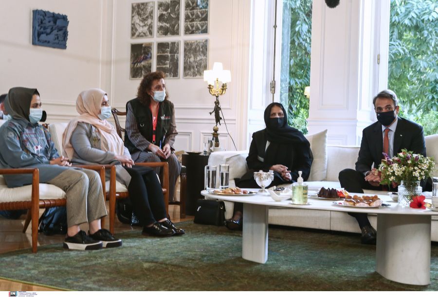 Ο πρωθυπουργός Κυριάκος Μητσοτάκης υποδέχθηκε το απόγευμα στο Μέγαρο Μαξίμου τρεις γυναίκες βουλευτές και τρεις γυναίκες δικαστικούς από το Αφγανιστάν οι οποίες απεγκλωβίστηκαν από τη χώρα τους και το καθεστώς των Ταλιμπάν και φιλοξενούνται σήμερα στην Ελλάδα.