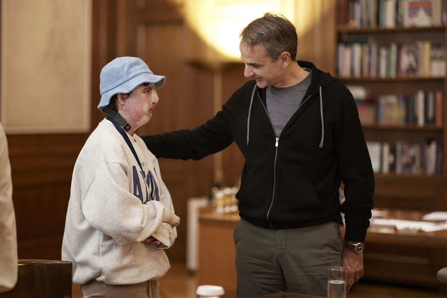 Πρωτοβουλίες που έχει υλοποιήσει η κυβέρνηση για τη στήριξη των εγκαυματιών αλλά και η ανάγκη ενίσχυσης της πρόληψης συζητήθηκαν κατά τη συνάντηση που είχε ο πρωθυπουργός Κυριάκος Μητσοτάκης, στο Μέγαρο Μαξίμου με τις εγκαυματίες Βικτώρια Αντόνοβα και Αντριέλα Γκιόκα και με τους συνιδρυτές της Ελληνικής Οργάνωσης για το Έγκαυμα και τους Εγκαυματίες «Salvia», Αλέξανδρο Ανδρονόπουλο και Μαρίνα Καρύδα, με αφορμή την Πανελλήνια Ημέρα Πρόληψης Εγκαυμάτων.
