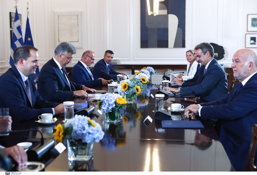 Οι διμερείς σχέσεις και οι περιφερειακές εξελίξεις με επίκεντρο τα Δυτικά Βαλκάνια, ήταν τα μείζονα θέματα συζήτησης κατά τη σημερινή συνάντηση του πρωθυπουργού Κυριάκου Μητσοτάκη με τον πρωθυπουργό της Κροατίας Αντρέι Πλένκοβιτς στο μέγαρο Μαξίμου. Κατά τη συνάντηση των δυο ηγετών συζητήθηκαν ακόμη θέματα ευρωπαϊκού ενδιαφέροντος.