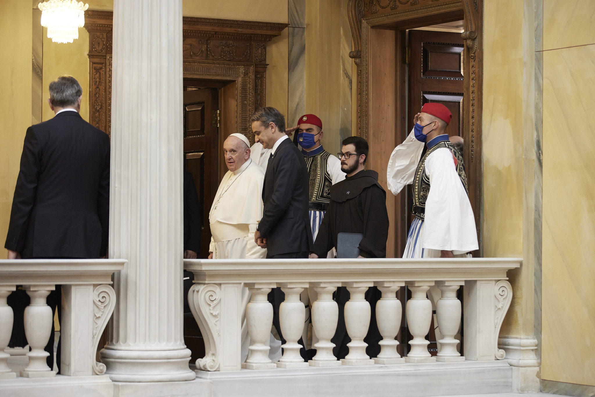 Κατά τη διάρκεια της συνάντησής τους, συζήτησαν θέματα αμοιβαίου ενδιαφέροντος με τον Κυριάκο Μητσοτάκη να ευχαριστεί τον Προκαθήμενο της Ρωμαιοκαθολικής Εκκλησίας για την επίσκεψη του στην χώρα μας σε μια χρονιά με υψηλή συμβολική σημασία λόγω της επετείου των 200 ετών από την έναρξη της Ελληνικής Επανάστασης εκφράζοντας ιδιαίτερη εκτίμηση για το ενδιαφέρον που επιδεικνύει σε μείζονα παγκόσμια θέματα.