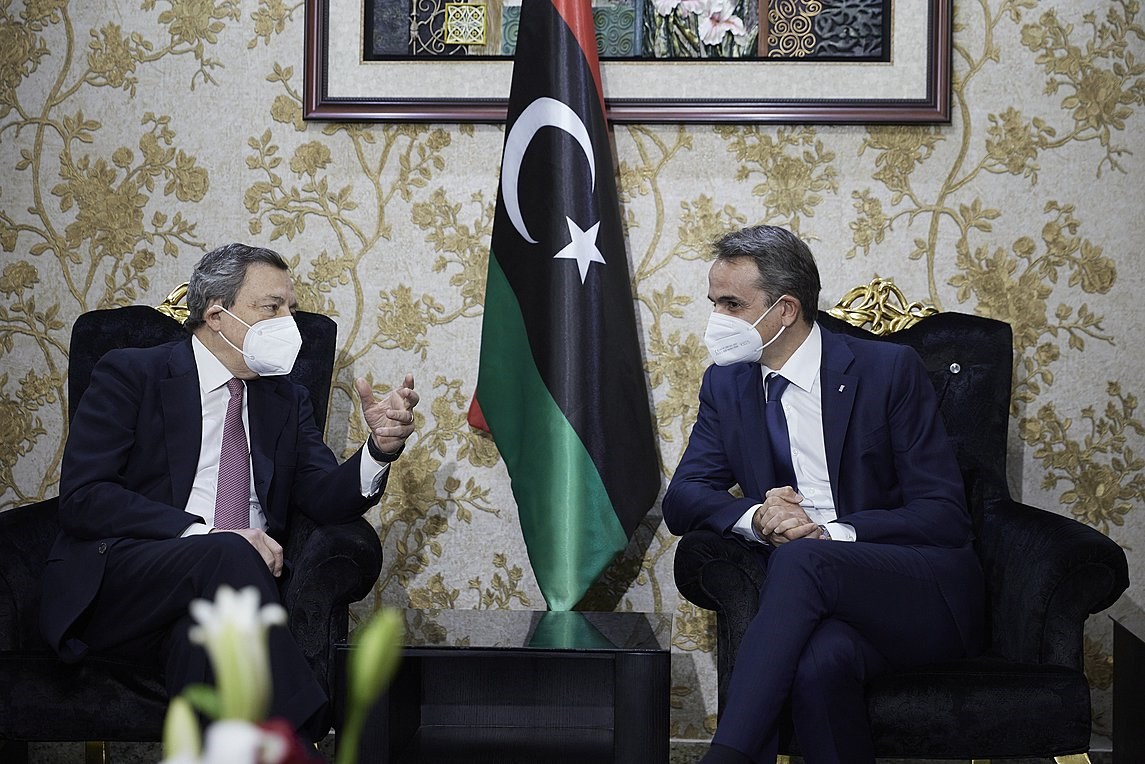 Με τον Ιταλό ομόλογό του, Μάριο Ντράγκι συναντήθηκε κατά την άφιξή του στην πρωτεύουσα της Λιβύης, Τρίπολη ο Πρωθυπουργός, Κυριάκος Μητσοτάκης. Σύμφωνα με το ΑΠΕ-ΜΠΕ, οι δύο ηγέτες αντάλλαξαν απόψεις για την κατάσταση που έχει διαμορφωθεί στη Λιβύη, αλλά και την ανάγκη τα κράτη-μέλη της Ε.Ε. να στηρίξουν τις προσπάθειες για την ανασυγκρότηση, σταθεροποίηση και τη διεξαγωγή των εκλογών στη βορειοαφρικανική χώρα.