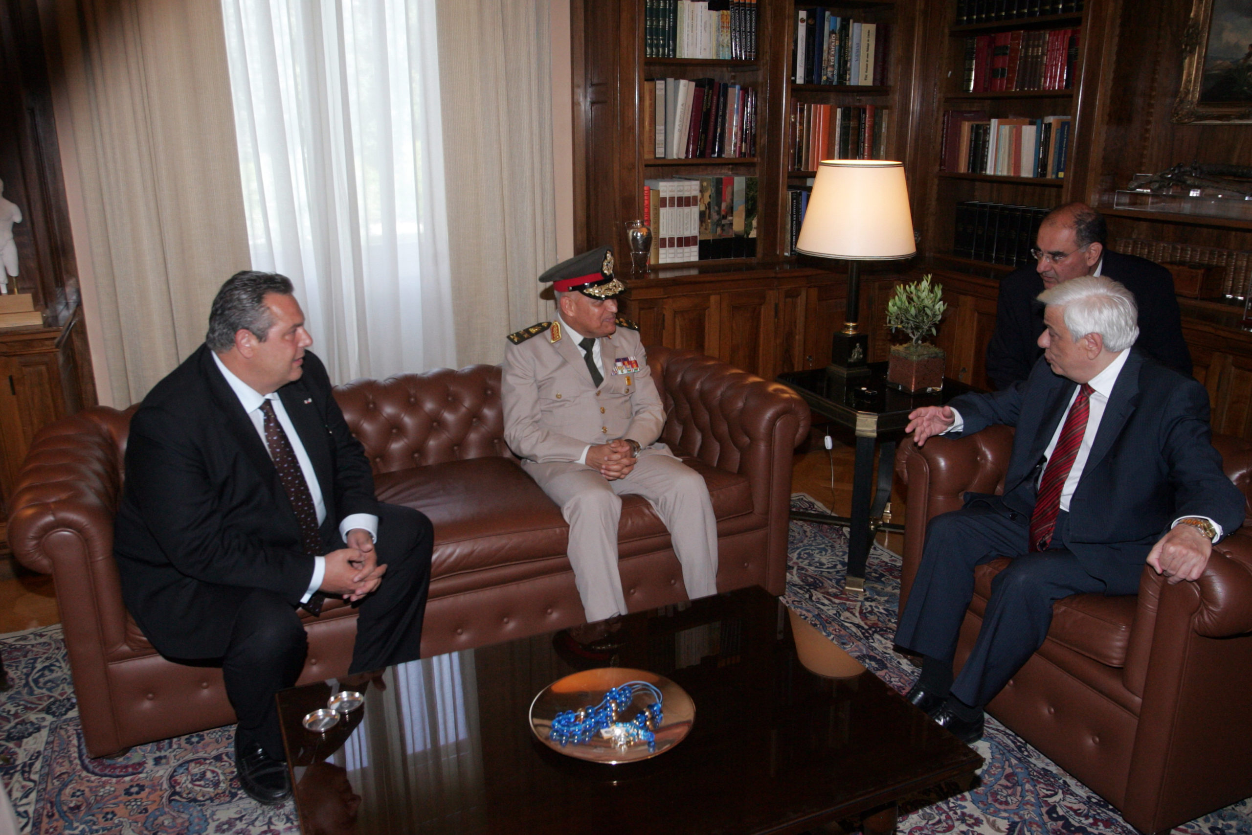 Τον υπουργό Άμυνας της Αιγύπτου συνόδευε ο Έλληνας ομόλογός του, Πάνος Καμμένος.