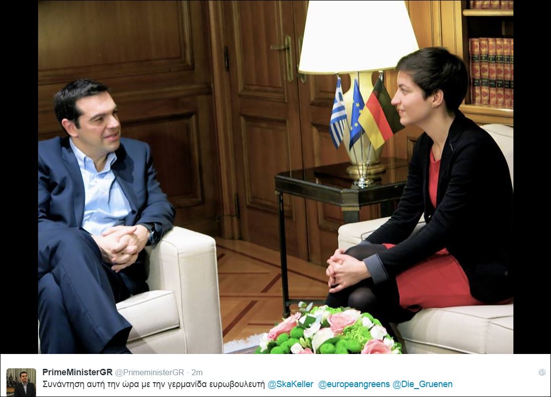Συνάντηση με την γερμανίδα ευρωβουλευτή, Αντιπρόεδρο της Ευρωπαϊκής Ομάδας των «Πρασίνων», Σκα Κέλερ έχει αυτή την ώρα ο Πρωθυπουργός, Αλέξης Τσίπρας, στο Μέγαρο Μαξίμου.
