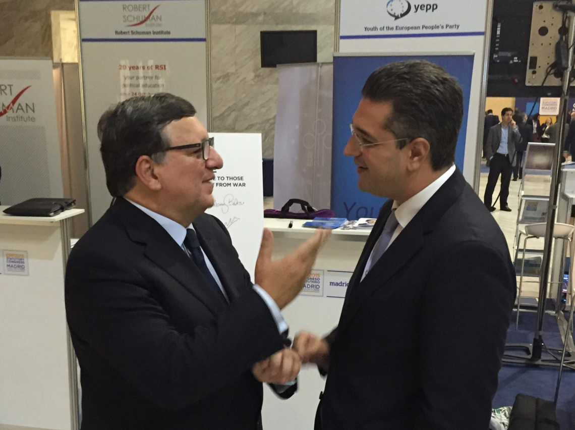 Στο περιθώριο του συνεδρίου, ο κ. Τζιτζικώστας συναντήθηκε με τον πρώην πρόεδρο της Κομισιόν Ζοζέ Μανουέλ Μπαρόζο, με τον οποίο συζήτησαν ζητήματα που αφορούν στην ευρωπαϊκή Κεντροδεξιά, ενώ ο κ. Μπαρόζο έδειξε ιδιαίτερο ενδιαφέρον για τις εκλογές στη Νέα Δημοκρατία. Ο κ. Τζιτζικώστας τον ενημέρωσε αναλυτικά για τις διαδικασίες της εκλογής νέου προέδρου του κόμματος.