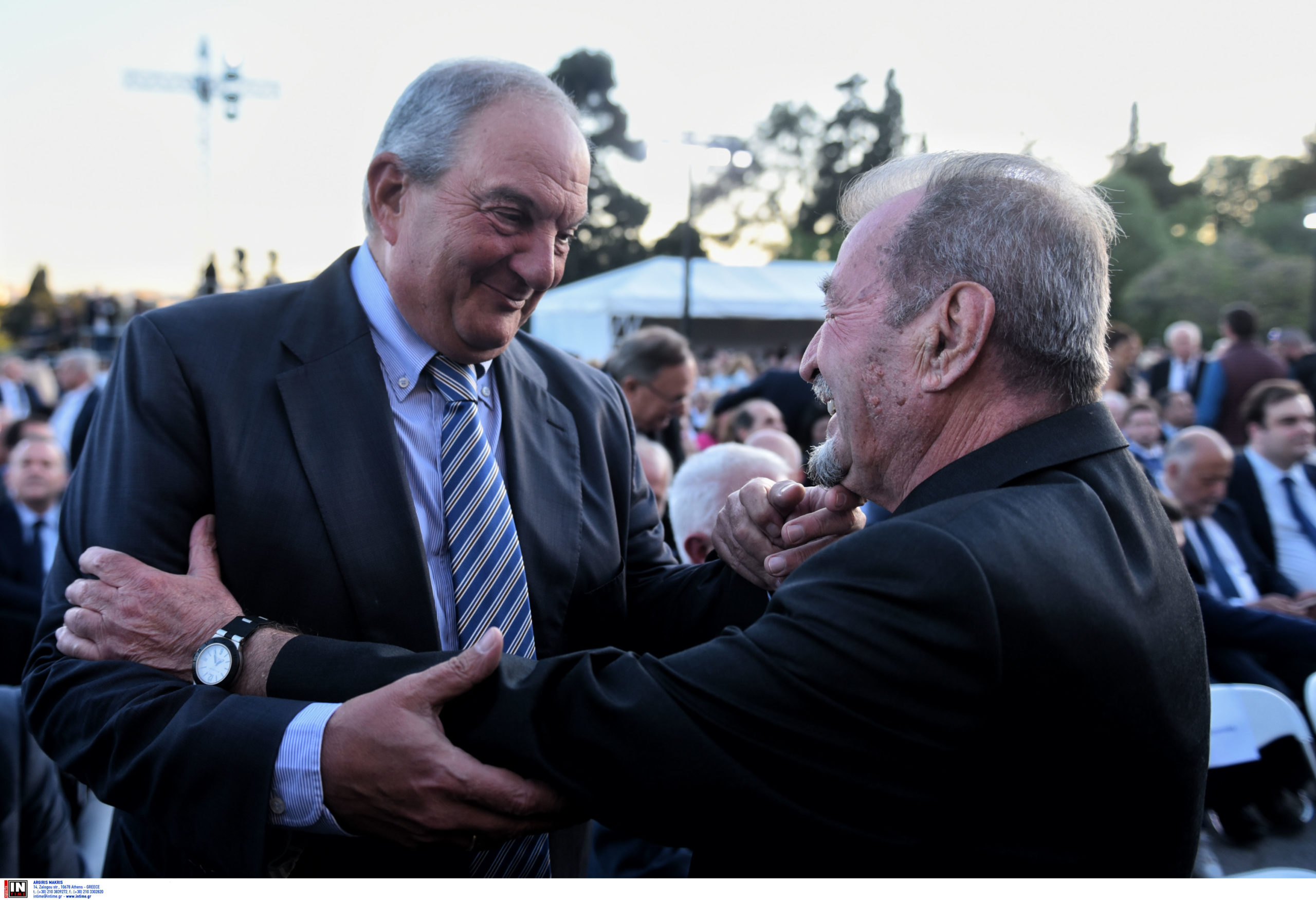 Η θερμή συνάντηση των πρώην πρωθυπουργών, κ.κ. Αντώνη Σαμαρά και Κώστα Καραμανλή.