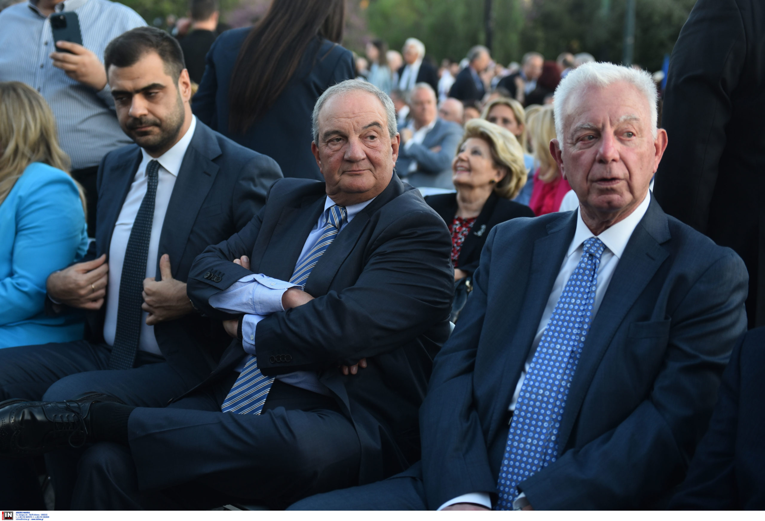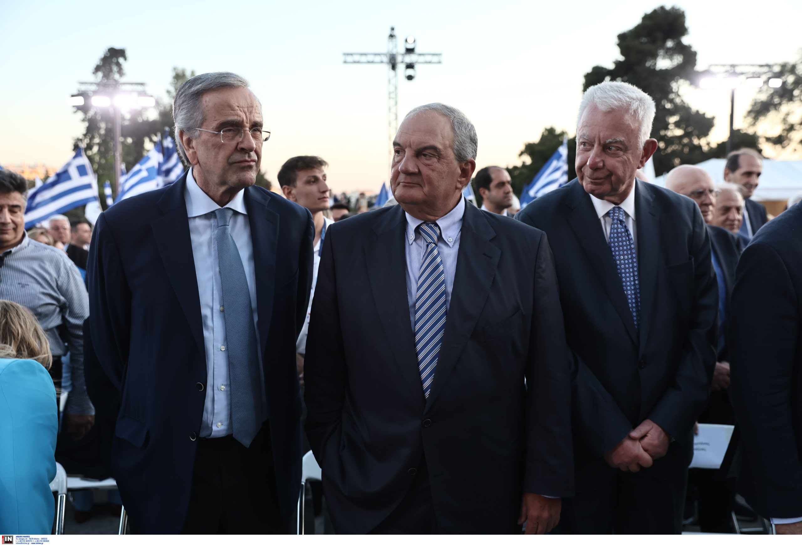 Η θερμή συνάντηση των πρώην πρωθυπουργών, κ.κ. Αντώνη Σαμαρά και Κώστα Καραμανλή.