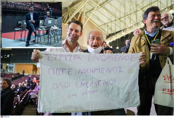 Μάλιστα, ο Στέφανος Κασσελάκης, ανέβηκε στις κερκίδες και συνάντησε τον σύνεδρο που νωρίτερα είχε σταθεί μπροστά στον Διονύση Τεμπονέρα κατά την διάρκεια της ομιλίας του, και ύψωσε πανό, στο οποίο, μεταξύ άλλων, αναγράφεται «ΣΥΡΙΖΑ ενωμένος, ποτέ νικημένος, όλοι ενωμένοι». Ο πρόεδρος του ΣΥΡΙΖΑ μάλιστα, βγήκε και φωτογραφία μαζί του χαμογελώντας.