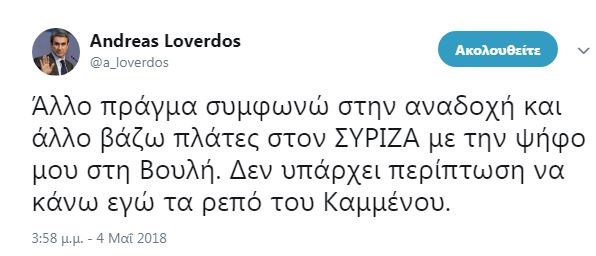 Όπως αναφέρει ο Ανδρέας Λοβέρδος «Άλλο πράγμα συμφωνώ στην αναδοχή και άλλο βάζω πλάτες στον ΣΥΡΙΖΑ με την ψήφο μου στη Βουλή. Δεν υπάρχει περίπτωση να κάνω εγώ τα ρεπό του Καμμένου».