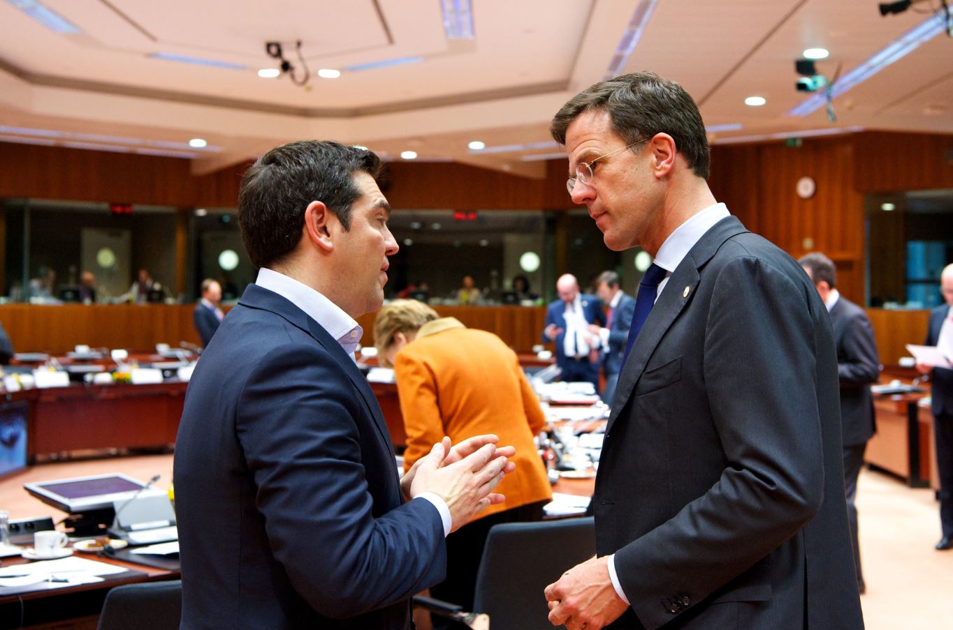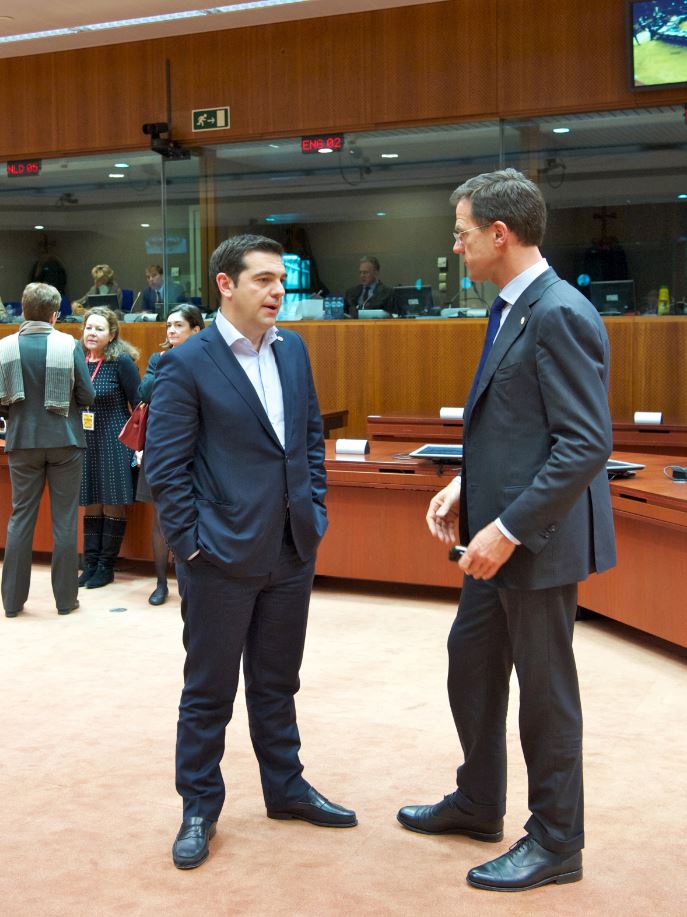 Ο Πρωθυπουργός Αλέξης Τσίπρας συνομιλεί με τον Πρωθυπουργό της Ολλανδίας Μάρκ Ρούτε κατά την διάρκεια της Συνόδου Κορυφής για το προσφυγικό, στις Βρυξέλλες.