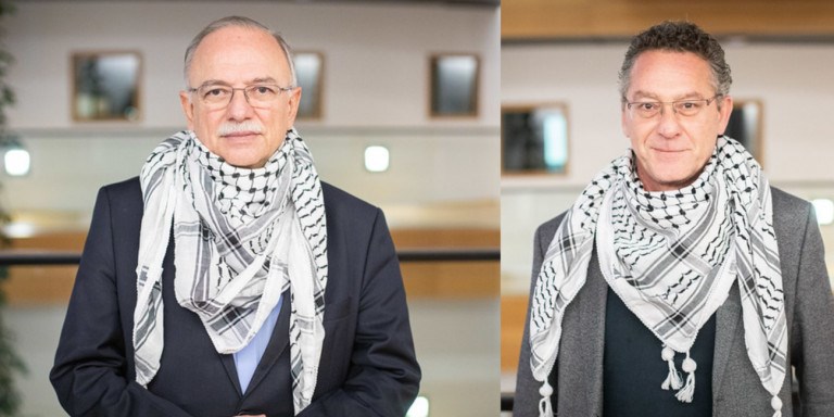 Οι δύο ευρωβουλευτές του ΣΥΡΙΖΑ φορώντας τις παλαιστινιακές μαντίλες, τις γνωστές κεφίγιε, συμμετέχουν στο βίντεο της ευρωομάδας της Ευρωπαϊκής Αριστεράς, διαμαρτυρόμενοι για τη «Συμφωνία του Αιώνα» την οποία παρουσίασε ο Τραμπ τον προηγούμενο μήνα.«Οι ευρωβουλευτές μας λαμβάνουν θέση για ένα κυρίαρχο, βιώσιμο και παρακείμενο παλαιστινιακό κράτος! Εκφράζουμε τη βαθύτατη αλληλεγγύη μας στον παλαιστινιακό λαό και τις προοδευτικές δυνάμεις στο Ισραήλ, που αγωνίζονται για ειρήνη, δικαιοσύνη και ισότητα» αναφέρει η ανάρτηση της ομάδας της Ευρωπαϊκής Αριστεράς στο twitter.Δείτε το tweet: