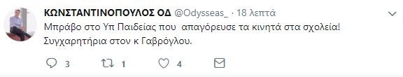 Τα συγχαρητήρια στο υπουργείο Παιδείας και προσωπικά στον κ. Κωνσταντίνο Γαβρόγλου για την απόφαση απαγόρευσης της χρήσης των κινητών τηλεφώνων στα σχολεία έδωσε μέσω Twitter ο βουλευτής της ΔΗ.ΣΥ. Οδυσσέας Κωνσταντινόπουλος.«Μπράβο στο υπουργείο Παιδείας που απαγόρευσε τα κινητά στα σχολεία! Συγχαρητήρια στον κ. Γαβρόγλου», έγραψε χαρακτηριστικά στον λογαριασμό του στο Twitter ο κ. Κωνσταντινόπουλος.Δείτε το tweet: