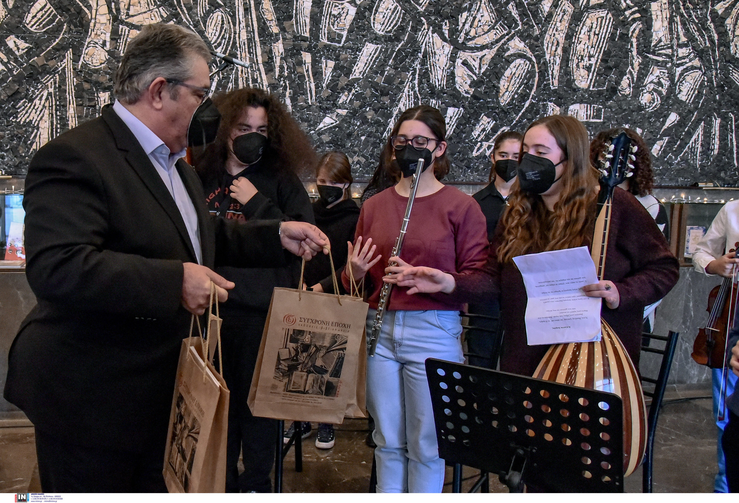 Τα πρωτοχρονιάτικα κάλαντα στον ΓΓ της ΚΕ του ΚΚΕ, Δημήτρη Κουτσούμπα, έψαλαν μαθητές και γονείς του Μουσικού Σχολείου Ιλίου.