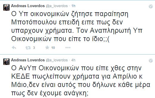Οι αναρτήσεις του Ανδρέα Λοβέρδου στο Twitter