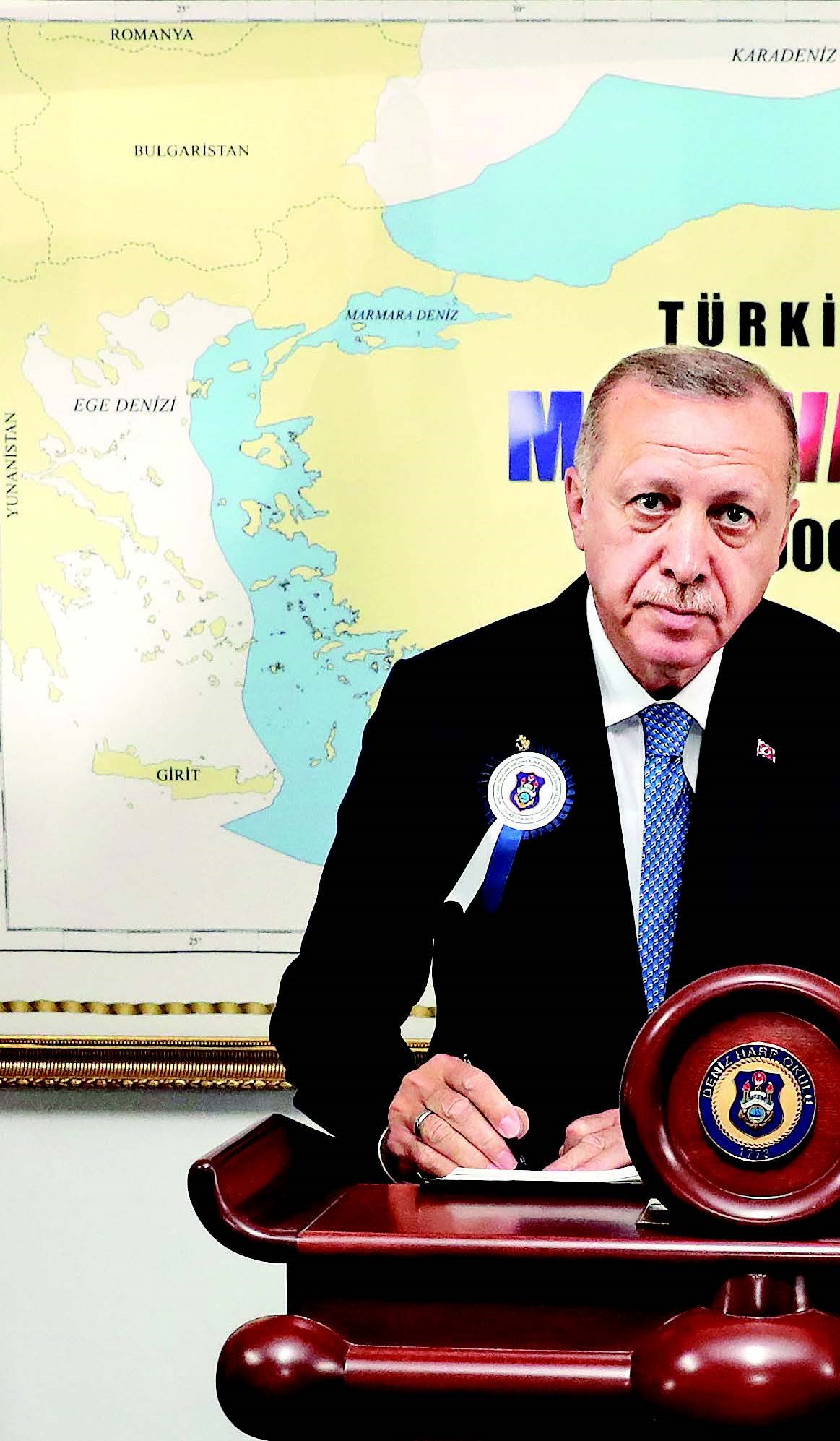 «Από την Ανατολική Μεσόγειο μέχρι και τη Μαύρη Θάλασσα, όπως και στο Αιγαίο που οι παλιοί το αποκαλούσαν Θάλασσα των Νήσων, θα εξασφαλίσουμε τα δικαιώματα μας σε όλα τα ύδατα που μας περικλείουν», δήλωσε ο Τούρκος Πρόεδρος.