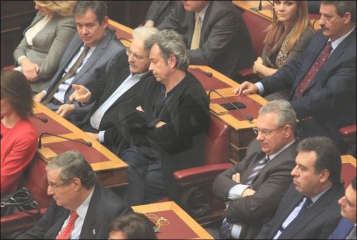 Στην ίδια σειρά είχε καθίσει ο Κώστας Σκανδαλίδης, ενώ στα μπροστινά έδρανα βρίσκονταν δίπλα – δίπλα, ο Μιχάλης Χρυσοχοΐδης, ο Θάνος Μωραΐτης και ο Νίκος Σηφουνάκης.