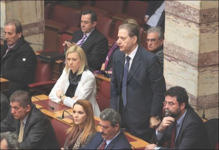 Με διαφορά δευτερολέπτων, στις 11:56, μπήκαν στην Ολομέλεια πρώτα η πρόεδρος της Κοινοβουλευτικής Ομάδας του ΚΚΕ Αλέκα Παπαρήγα και την ακολούθησε ο πρόεδρος της ΔΗΜΑΡ Φώτης Κουβέλης.
