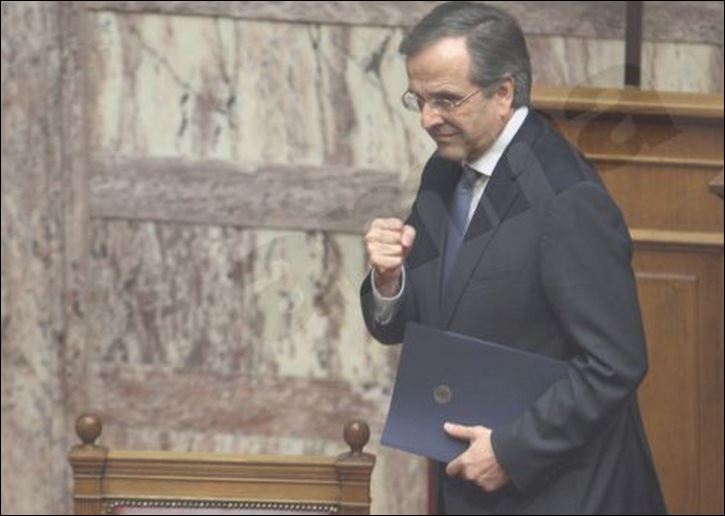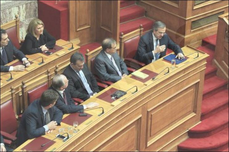 Ο Πρωθυπουργός Αντώνης Σαμαράς μπήκε στην αίθουσα της Ολομέλειας στις 12:05΄ και χειροκροτήθηκε από τους βουλευτές του κόμματος του, οι οποίοι σηκώθηκαν όρθιοι.