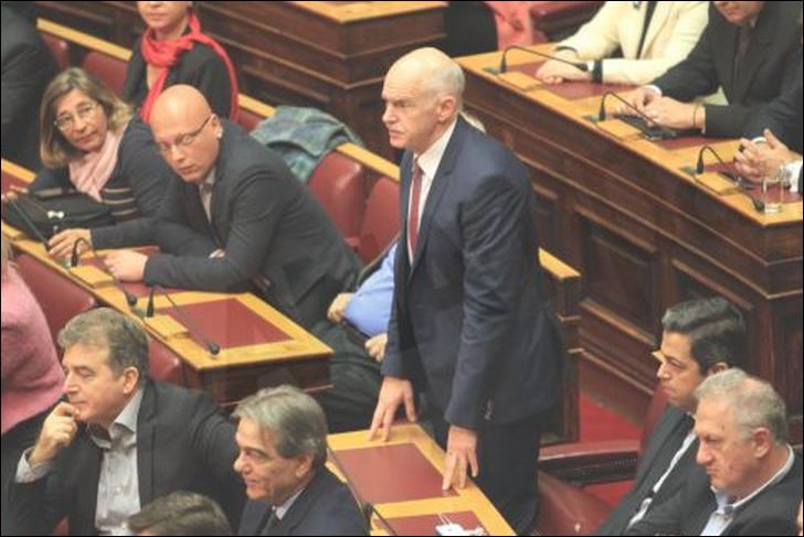 Ο Φίλιππος Σαχινίδης σηκώθηκε αμέσως και του παραχώρησε τη θέση του, καθώς όλα τα έδρανα των βουλευτών του ΠΑΣΟΚ ήταν ήδη κατειλημμένα. Ο κ. Παπανδρέου κάθισε δίπλα στον Συμεών Κεδίκογλου και έδειχνε να ακούει με ενδιαφέρον όσα του έλεγε μέχρι να ολοκληρωθεί η ψηφοφορία από την οποία αποχώρησε μόλις ανακοινώθηκε το αποτέλεσμα.