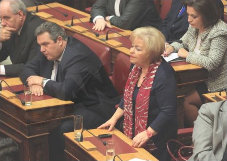Η Νίκη Φούντα μπήκε στις 11:39 στην Ολομέλεια, κάθισε μόνη της στα άδεια έδρανα, άνοιξε το κινητό της για να ρίξει μια ματιά στις τελευταίες ειδήσεις, ενώ λίγο αργότερα επέλεξε τα τελευταία ορεινά έδρανα, δίπλα στον Σπύρο Λυκούδη και τον Γρηγόρη Ψαριανό.