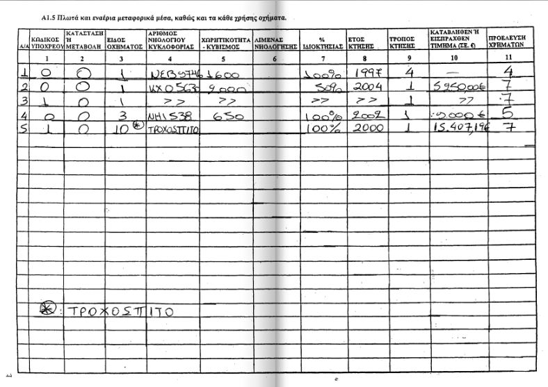 Ένα από αυτά είναι το τροχόσπιτο που δηλώνει ότι έχει στην κατοχή της η βουλευτής των Ανεξαρτήτων Ελλήνων Σταυρούλα Ξουλίδου.