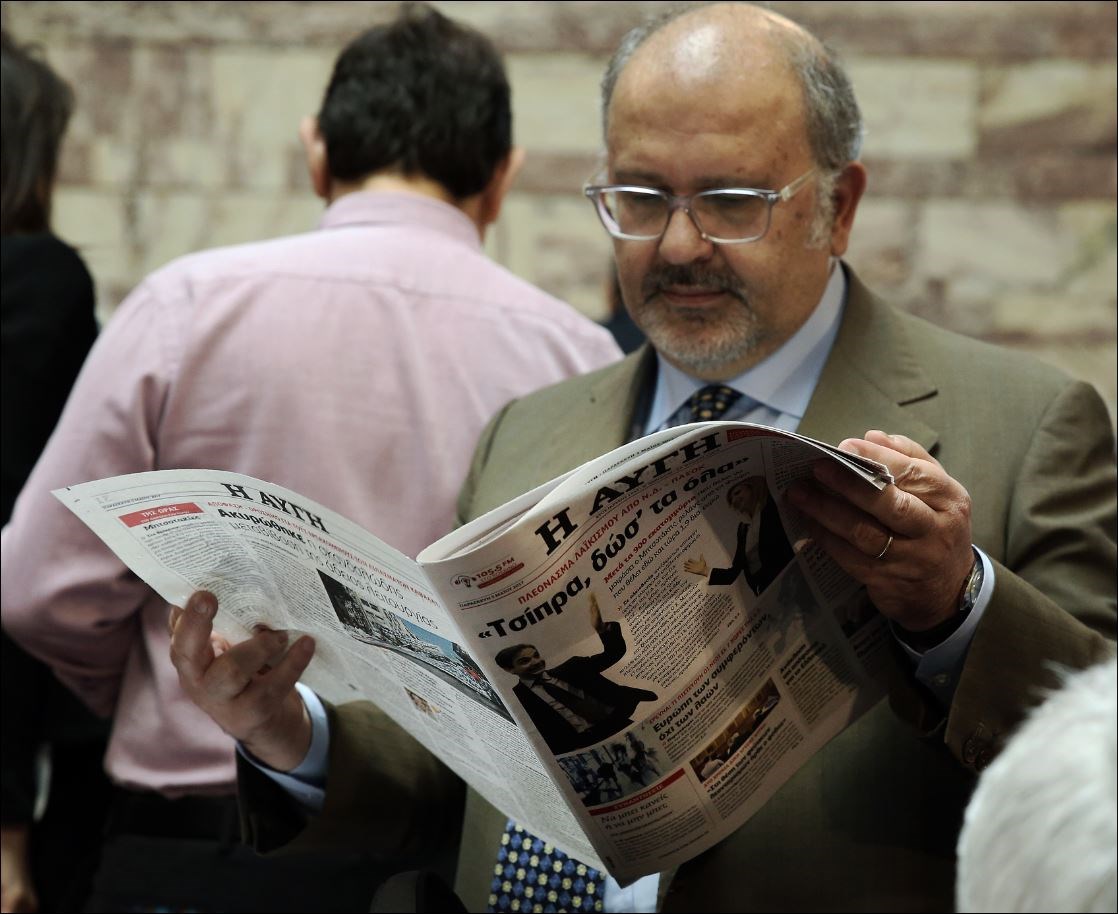 Ο βουλευτής Νίκος Ξυδάκης βρήκε την ευκαιρία να διαβάσει την Αυγή.