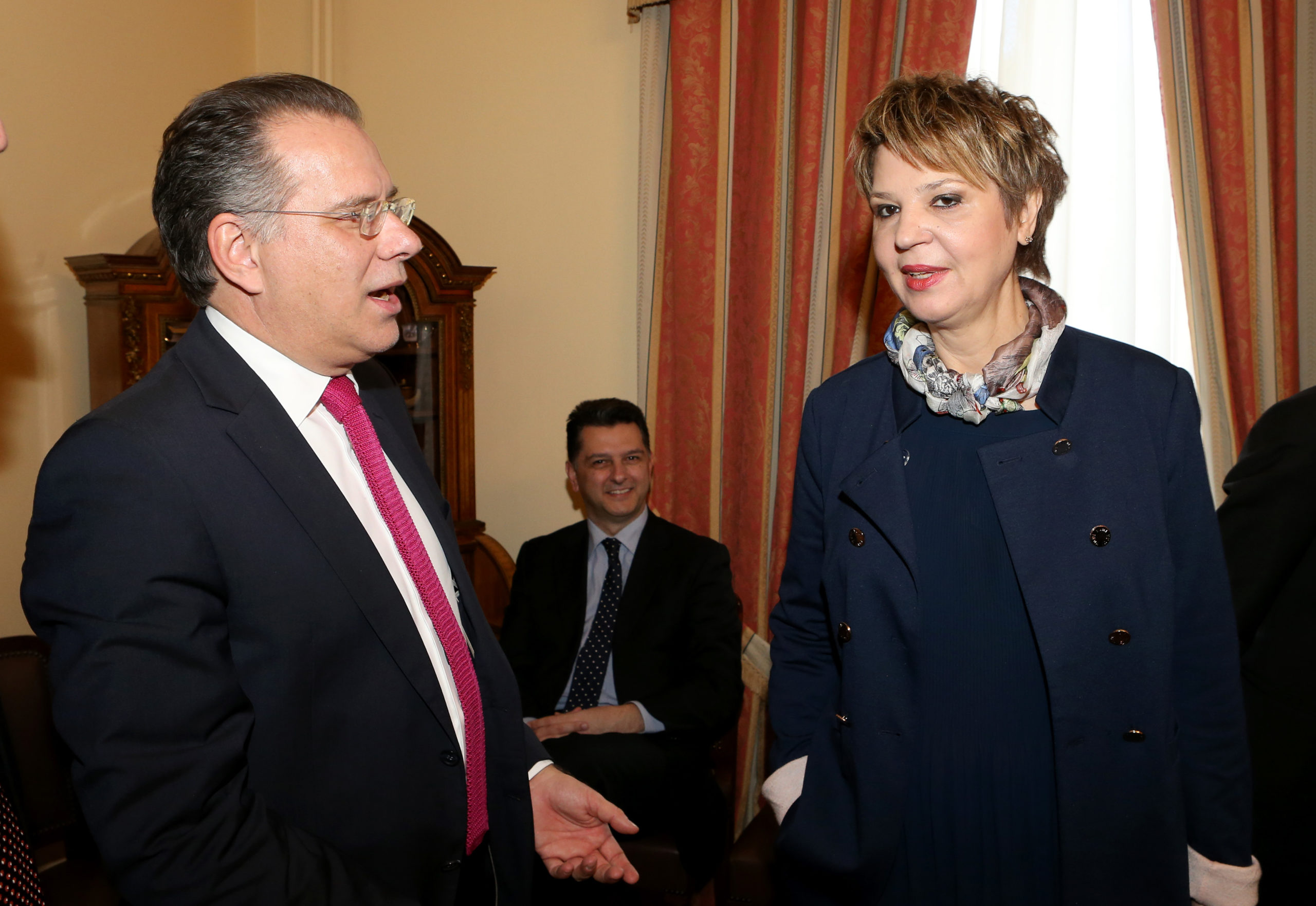 Η κυβερνητική Εκπρόσωπος, Όλγα Γεροβασίλη, συνομίλησε με τον εκπρόσωπο της Νέας Δημοκρατίας, Γιώργο Κουμουτσάκο και τον Τέρενς Κουίκ από τους Ανεξάρτητους Έλληνες, ενώ στη συνέχεια ο κ. Κουμουτσάκος αποχώρησε από την «κυβερνητική παρέα».