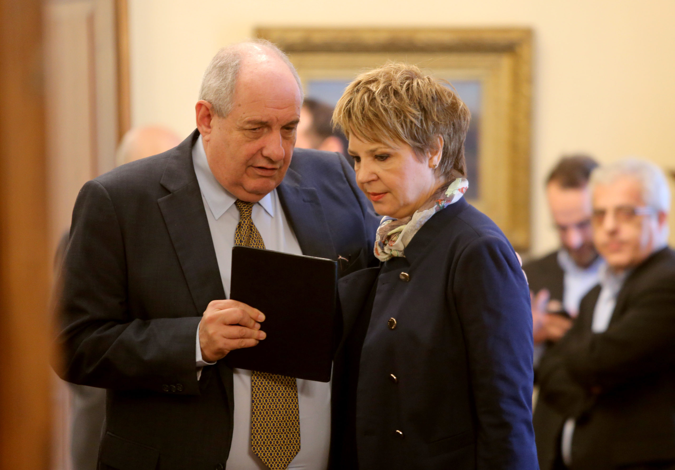 Σημειώνεται ότι οι εκπρόσωποι του ΠΑΣΟΚ έχουν στήσει «πηγαδάκι» με τους εκπροσώπους του Ποταμιού, ενώ οι εκπρόσωποι της Ένωσης Κεντρώων κάθονται μόνοι τους.
