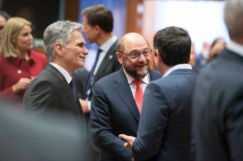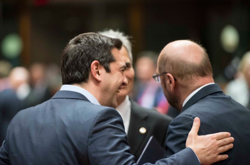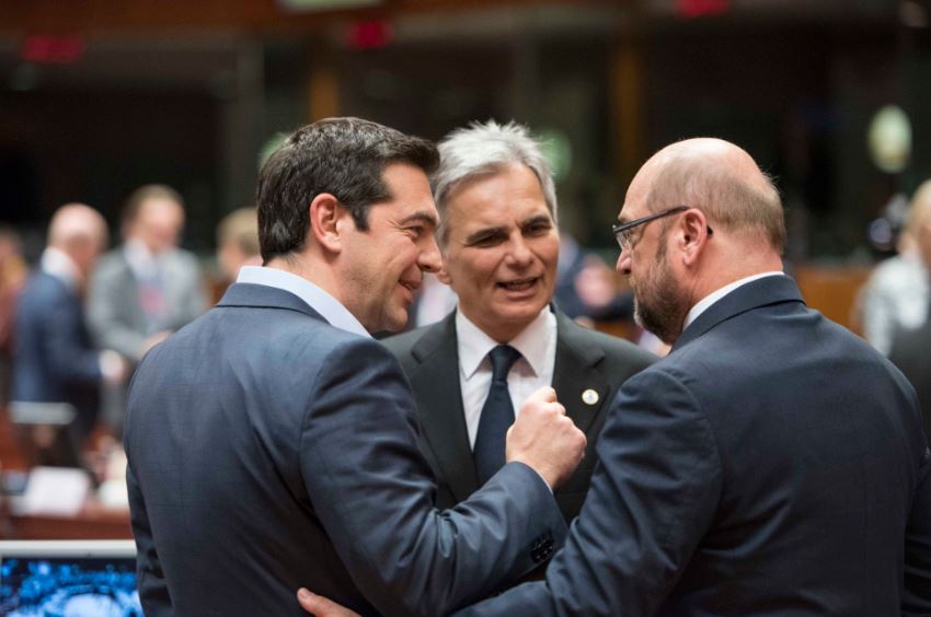 Στην έκτακτη Σύνοδο Κορυφής, που πραγματοποιείται στις Βρυξέλλες, βρίσκεται ο Έλληνας Πρωθυπουργός, Αλέξης Τσίπρας. Όπως φαίνεται και στις φωτογραφίες, ο κ. Τσίπρας, είχε την δυνατότητα να συνομιλήσει με τον Ζαν Κλοντ Γιούνκερ, τον Μάρτιν Σουλτς και τον Βέρνερ Φάιμαν, ενώ δεν έλειψαν τα χαμόγελα και τα πειράγματα.