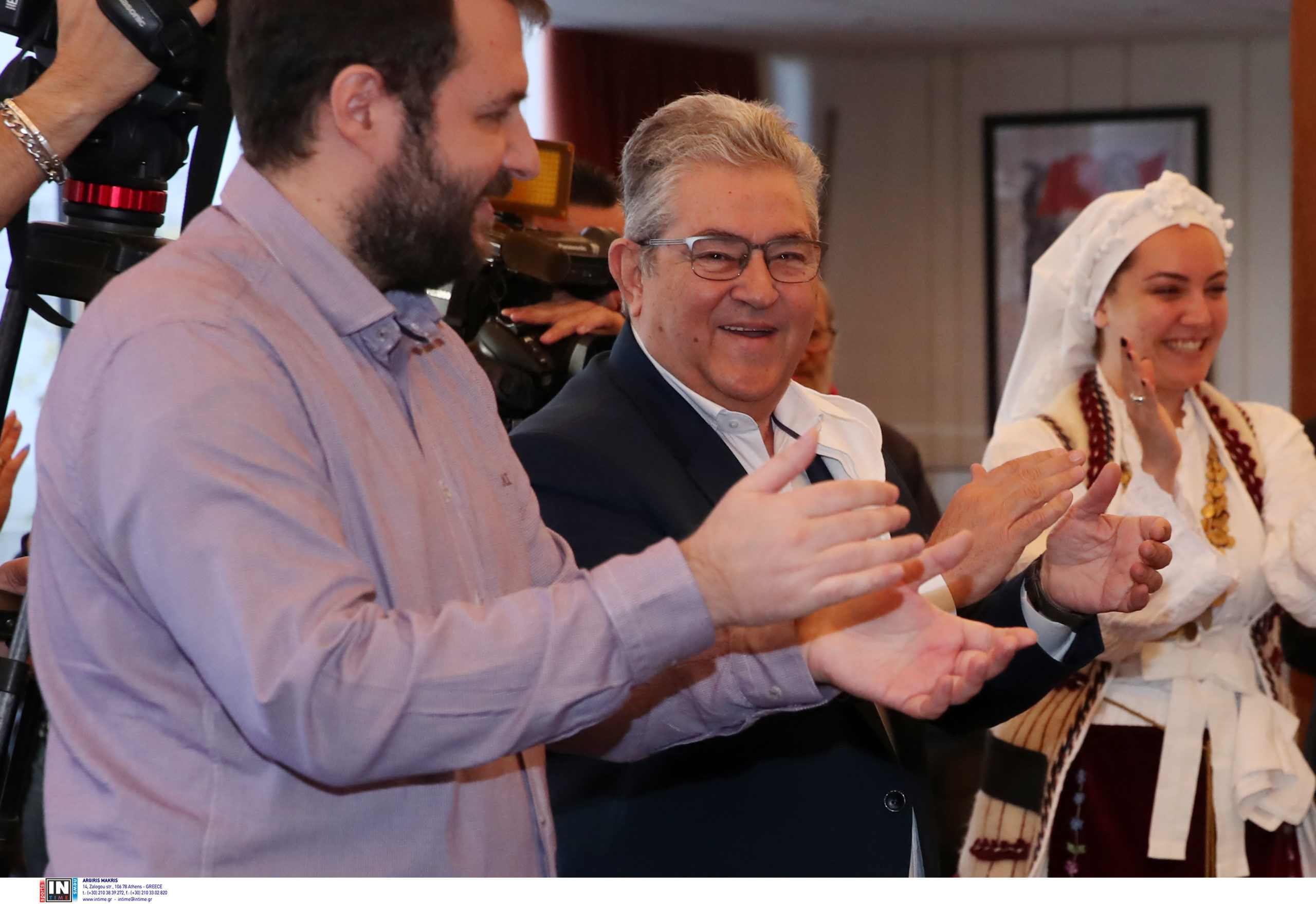 Τα πρωτοχρονιάτικα κάλαντα τραγούδησαν επίσης στον κ. Κουτσούμπα τα μέλη του Συλλόγου «Ελληνικοί Χοροί Παραδοσιακή Φλόγα», τα οποία χόρεψαν και παραδοσιακούς χορούς της πατρίδας μας.
