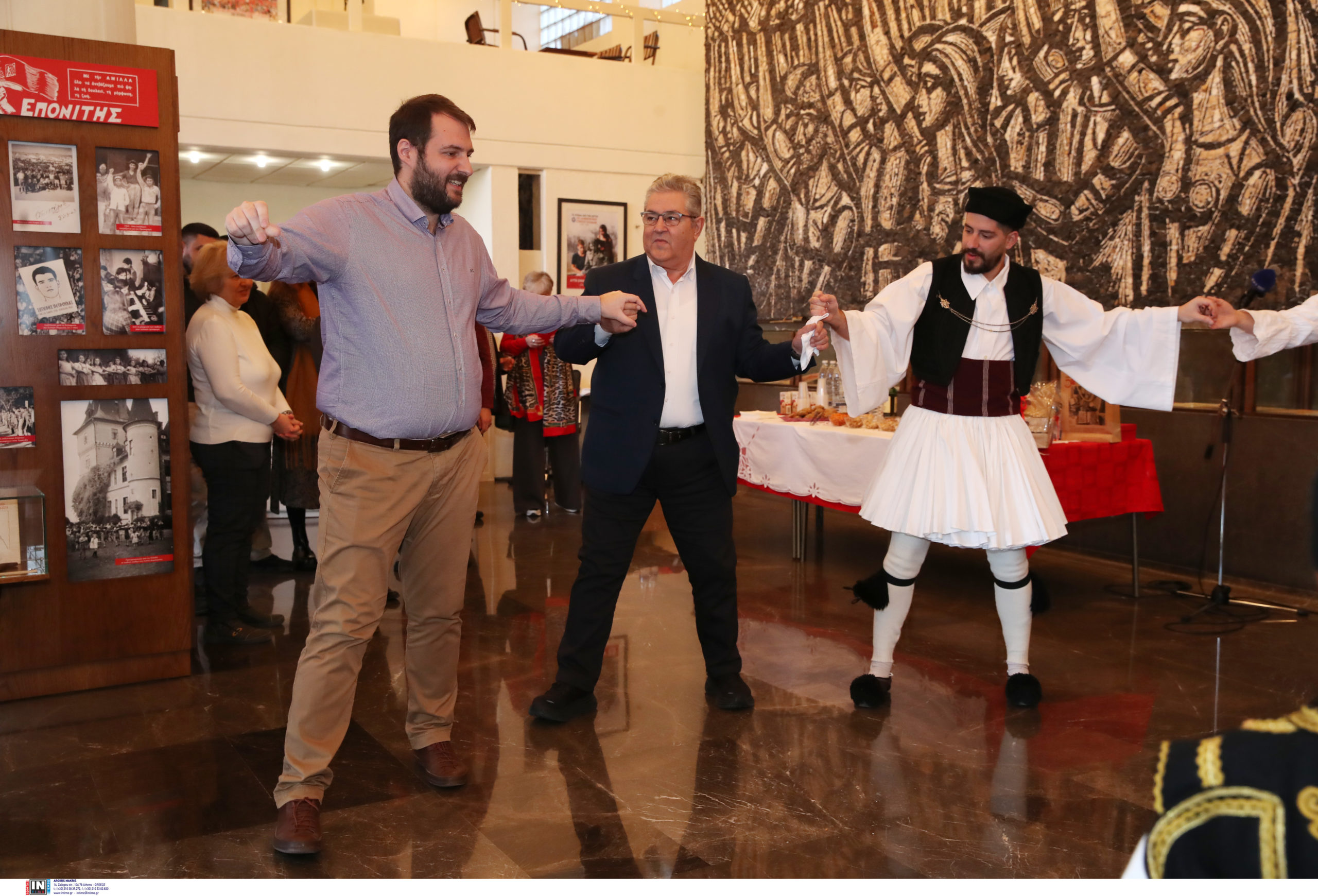 Τα πρωτοχρονιάτικα κάλαντα άκουσε σήμερα ο γενικός γραμματέας της ΚΕ του ΚΚΕ Δημήτρης Κουτσούμπας, από τη χορωδία της Πανηπειρωτικής Συνομοσπονδίας Ελλάδας, η οποία τραγούδησε επίσης και παραδοσιακά τραγούδια της Ηπείρου τα οποία χόρεψαν και μέλη του Συλλόγου Ηπειρωτών Νέας Ιωνίας «’Απειρος Γαία».