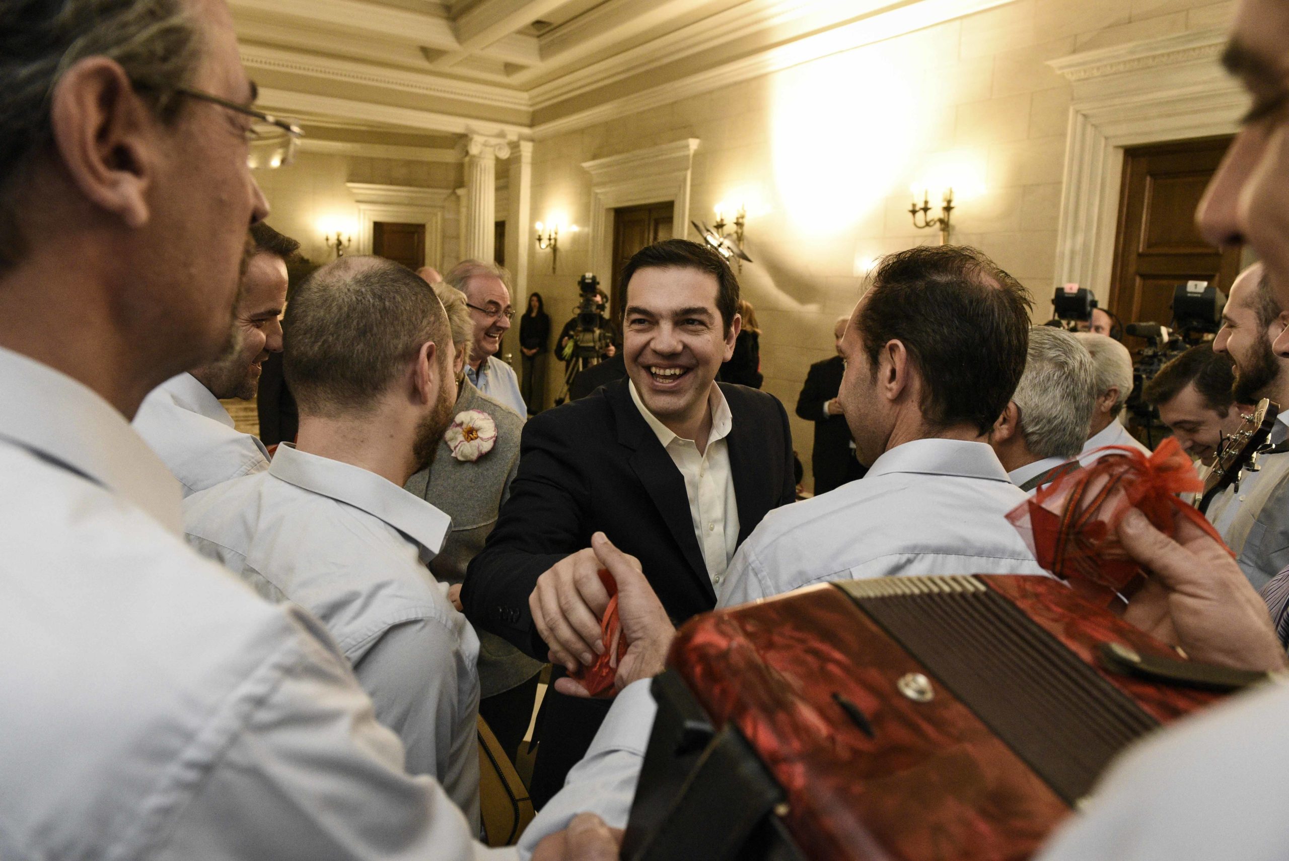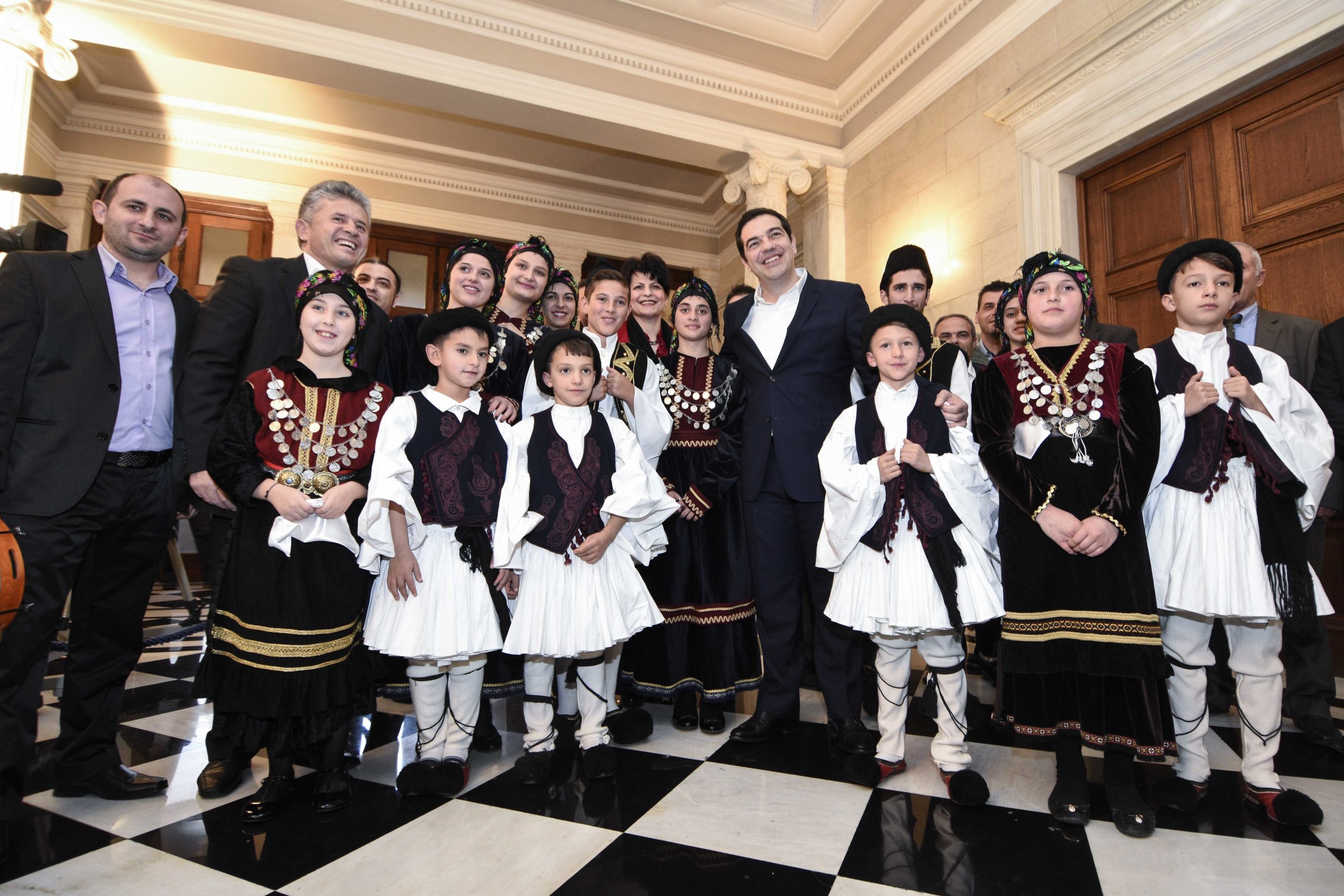 Ο Πρωθυπουργός, Αλέξης Τσίπρας άκουσε τα πρωτοχρονιάτικα κάλαντα στο Μέγαρο Μαξίμου.