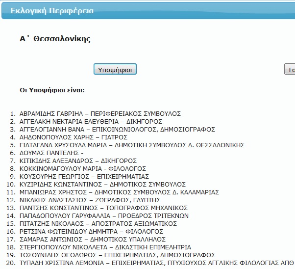 Δείτε εδώ σε χάρτη τον πίνακα με όλους τους υποψήφιους.