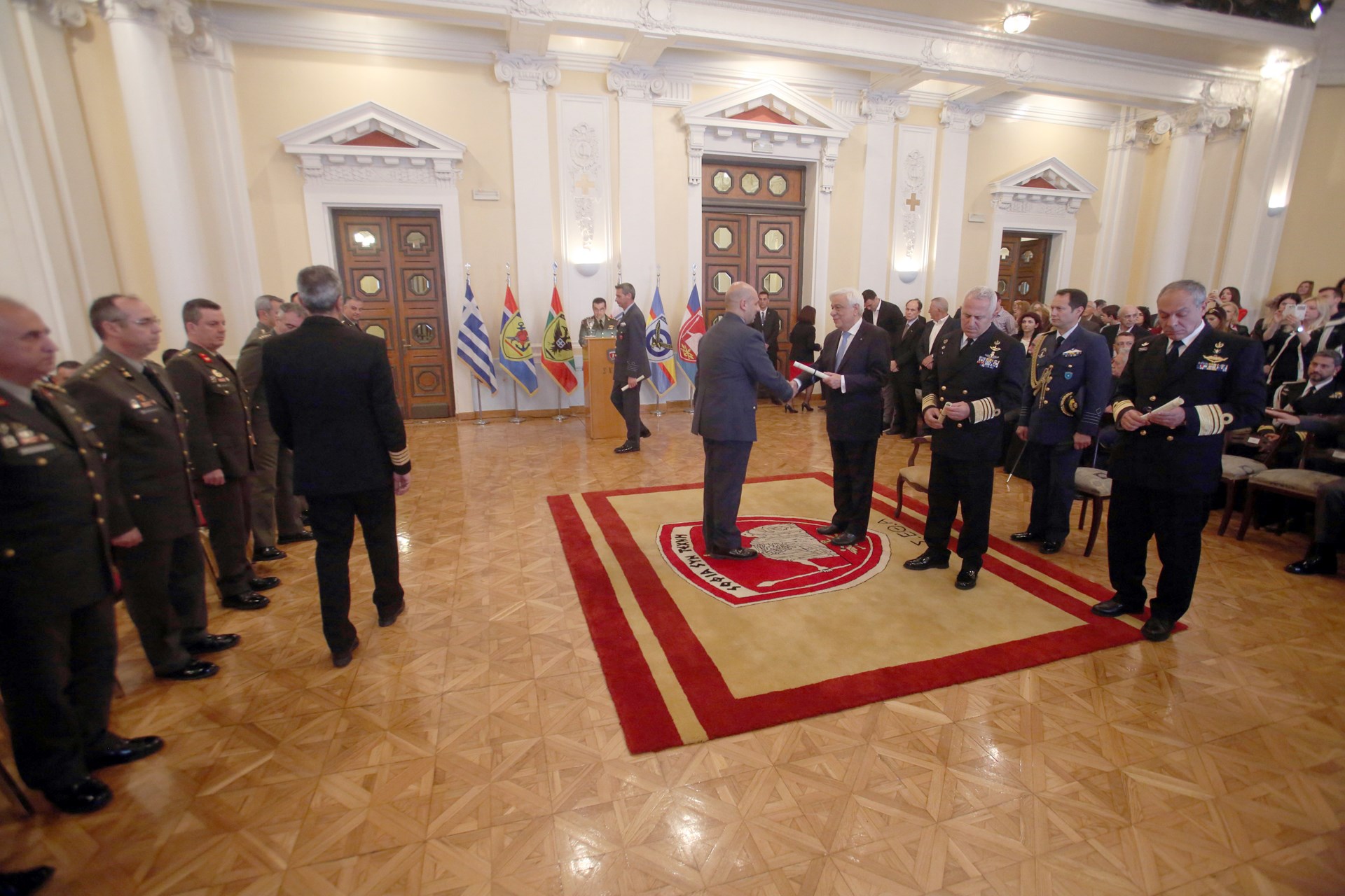 Τα πτυχία στους αποφοιτήσαντες της 70ης Εκπαιδευτικής Σειράς της Σχολής Εθνικής Άμυνας επέδωσε, σήμερα, ο Πρόεδρος της Δημοκρατίας, Προκόπης Παυλόπουλος, κατά τη διάρκεια ειδικής τελετής που πραγματοποιήθηκε στη Λέσχη Αξιωματικών Ενόπλων Δυνάμενων (ΛΑΕΔ). Στην τελετή παρέστησαν σύσσωμη η ηγεσία των Ενόπλων Δυνάμεων και των Σωμάτων Ασφαλείας.