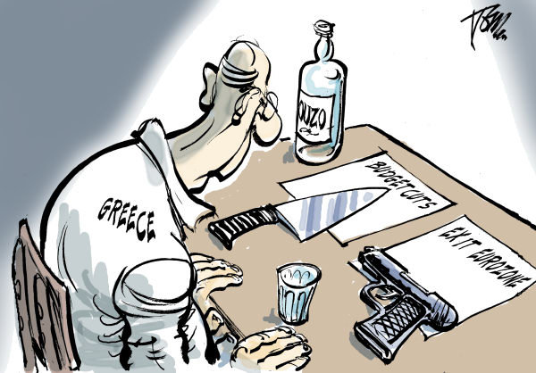 Δείτε τα καλύτερα από τα δεκάδες Ευρωπαικά σκίτσα για τις ελληνικές εκλογές που κυκλοφορούν αυτή τη στιγμή στο διαδίκτυο. “Με ένα μπουκάλι ούζο η Ελλάδα προσπαθεί να επιλέξει μεταξύ της εξόδου από την ευρωζώνη και των περικοπών προϋπολογισμού”